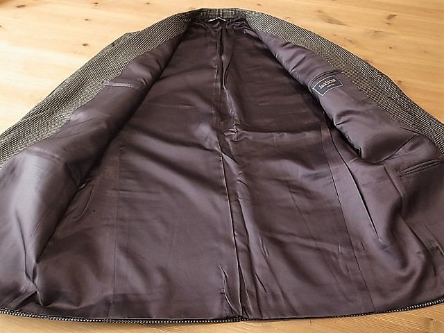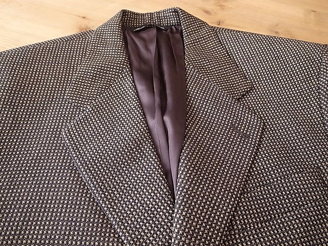 ◆ブランド… 「JACK VICTOR」アメリカ古着 ●サイズ表記 なし 日本サイズの L相当 肩幅…48cm(肩先から肩先の間の長さ) 身幅…56cm(両脇を横直線に結んだ長さ) 着丈…78cm(後衿ぐり中央から後身頃裾) 袖丈…63cm(袖付けの肩先から袖先) ※平置き状態での素人採寸ですので、多少の誤差はご了承ください。 ●素材表記…PURE VIRGIN WOOL 秋冬春向き ●色… 黒×ベージュのミックス ピンチェック柄 ●裏地… 総裏仕立て ●ベント… ノーベント ●ポケット…フラップポケット ●製造国表記… カナダ ●状態…使用感は少ない美品です。 ★送料 全国一律 700円 佐川急便 (北海道900円 沖縄その他離島1700円) ※複数ご購入の場合、同梱発送可能です。 |