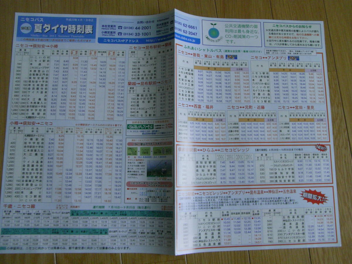 ニセコバス 23年度夏ダイヤ時刻表 平成23年4月1日改正