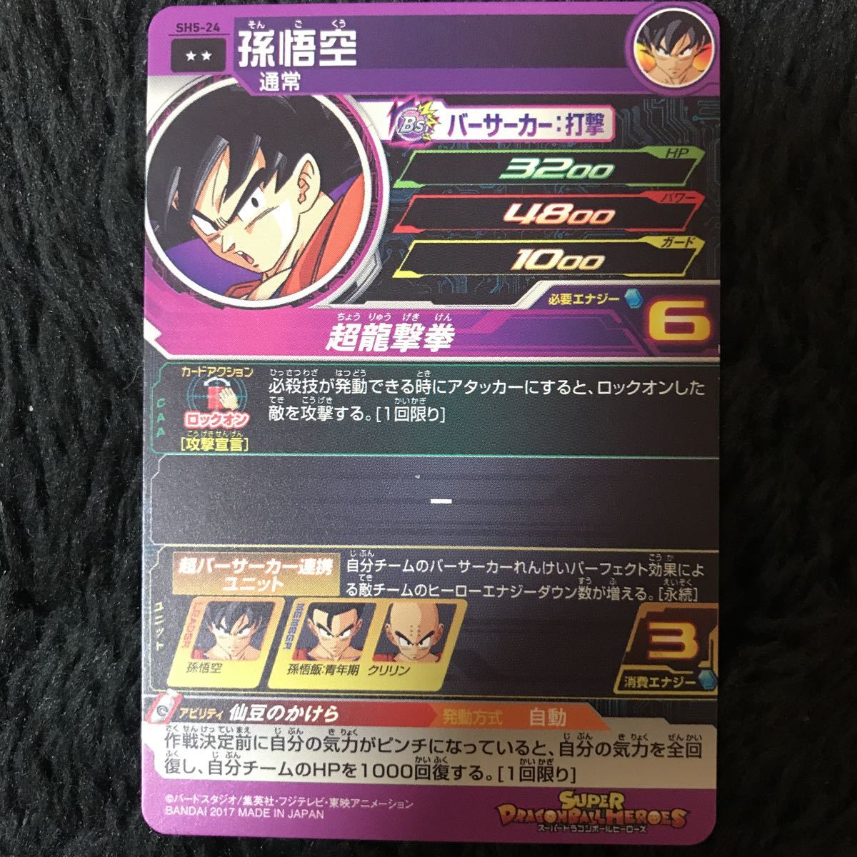 SH5弾レア/ 孫悟空(通常)/ SH5-24/ 技:超龍撃拳/ スーパードラゴンボールヒーローズ/ レアリティ:☆☆/ 2017 BANDAI