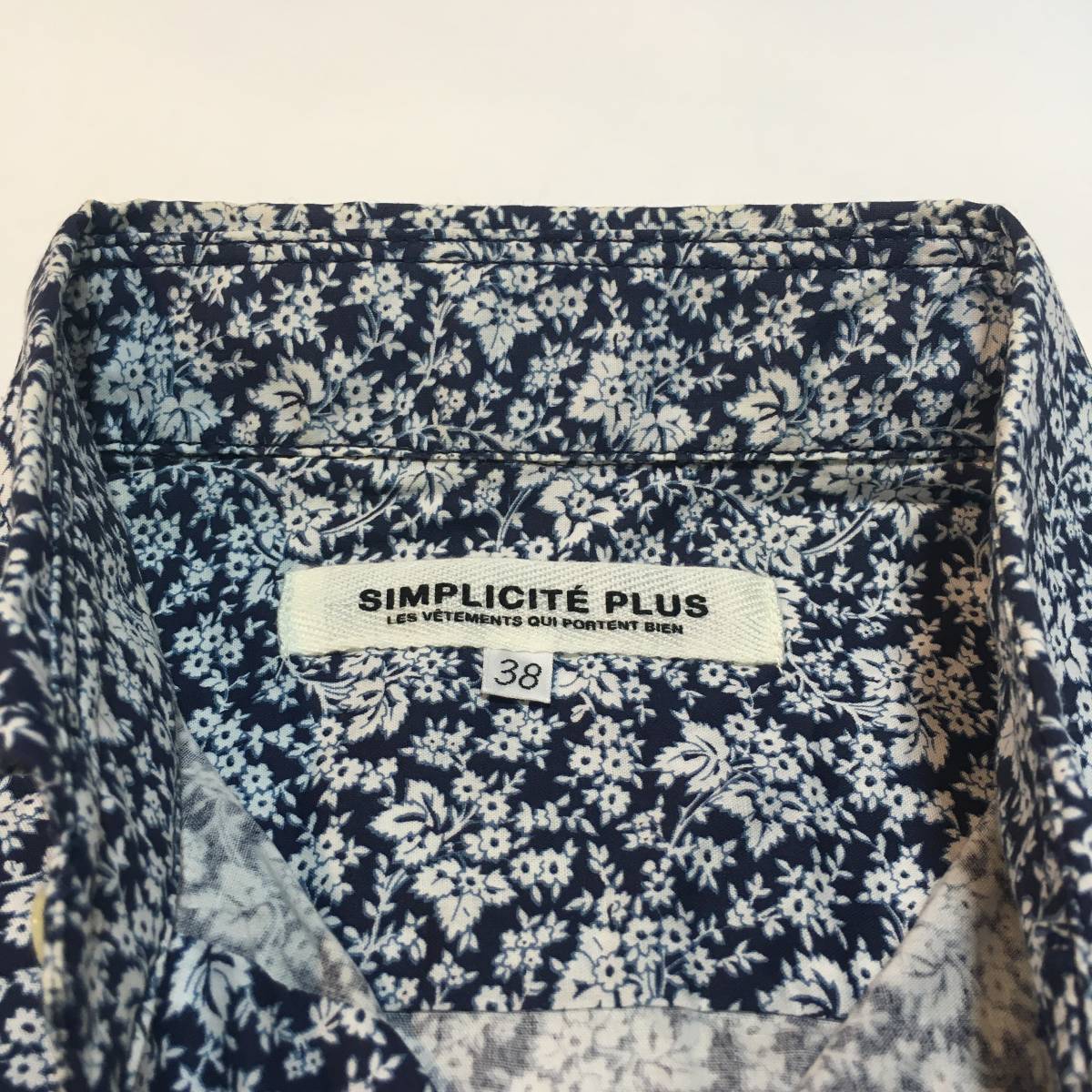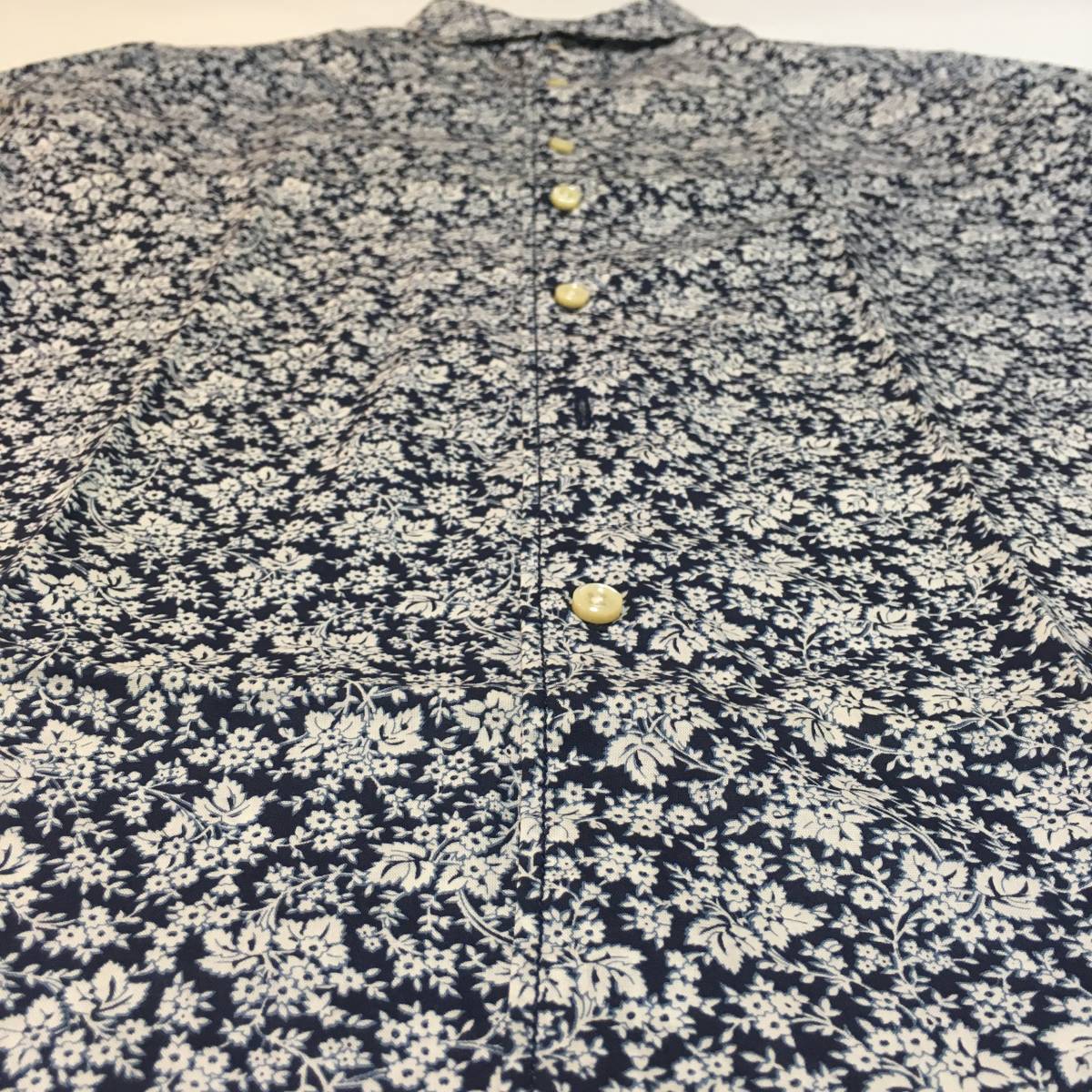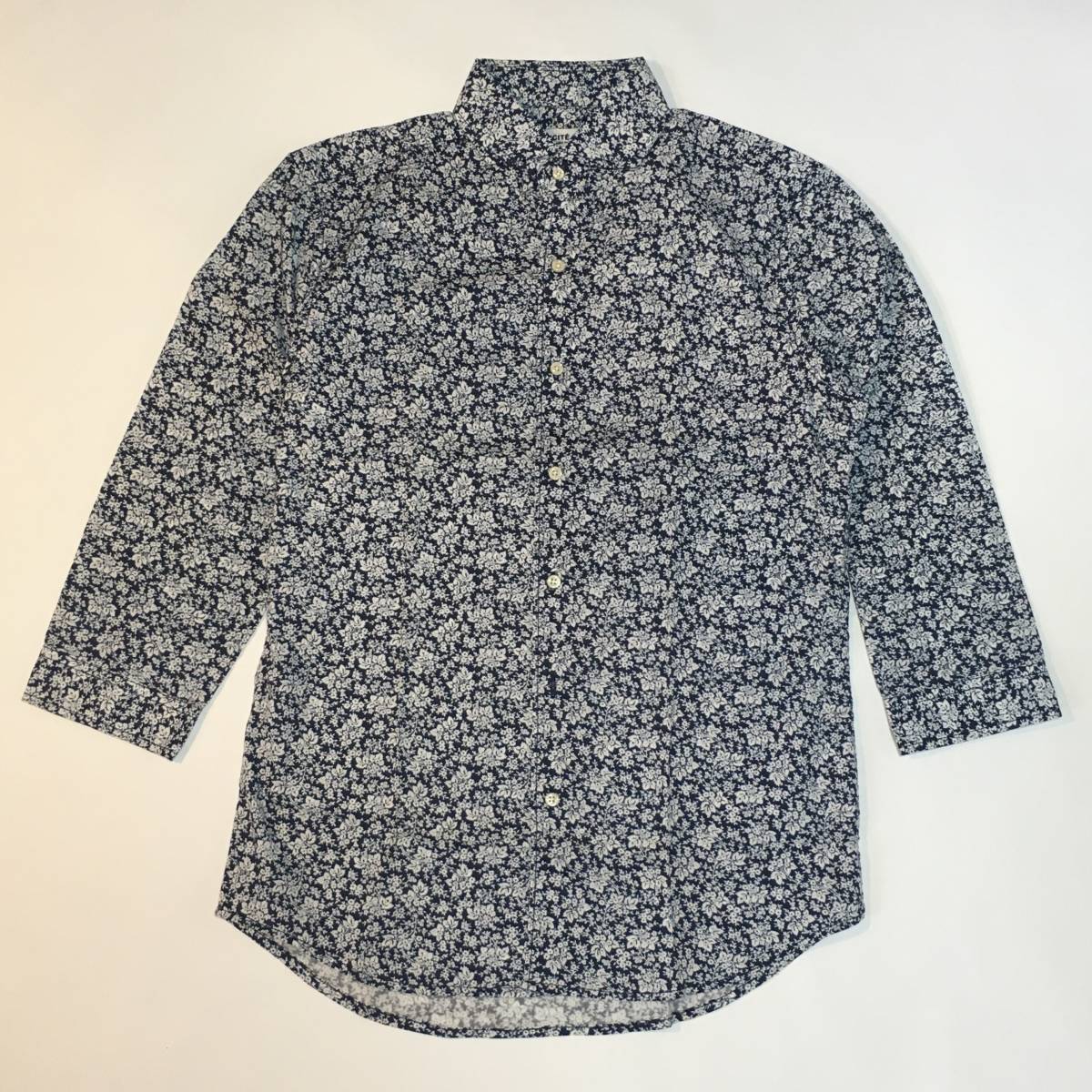 美品 SIMPLICITE PLUS 花柄 総柄 シンプリシテプリュス 七部丈 ボタンシャツ ブルー メンズ長袖 春秋物 BLUE ブルー 青