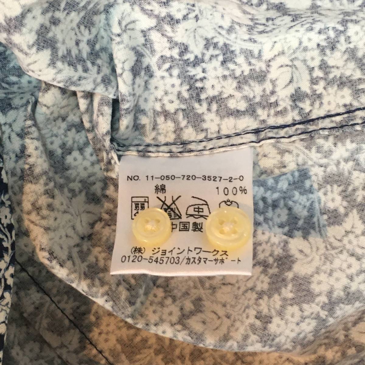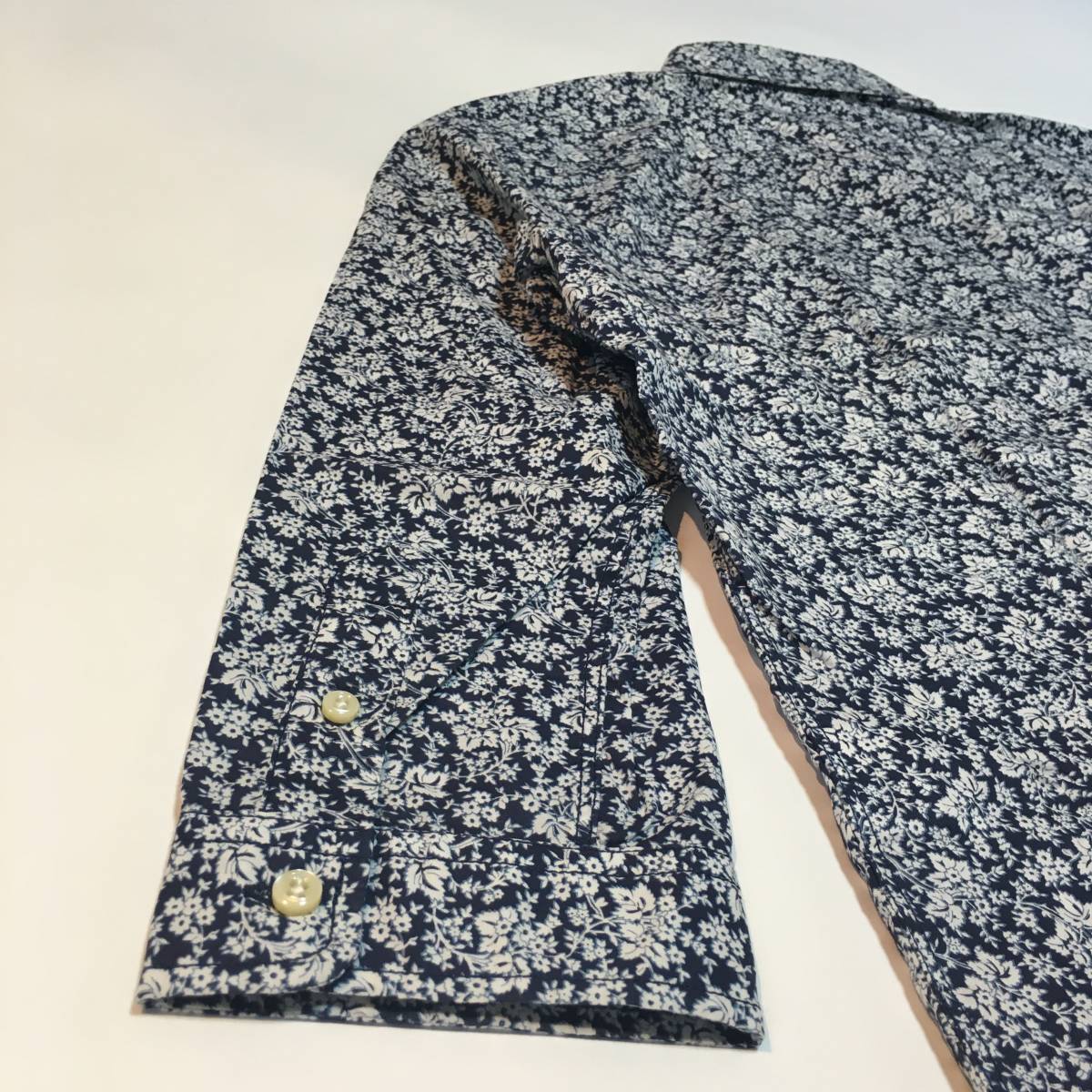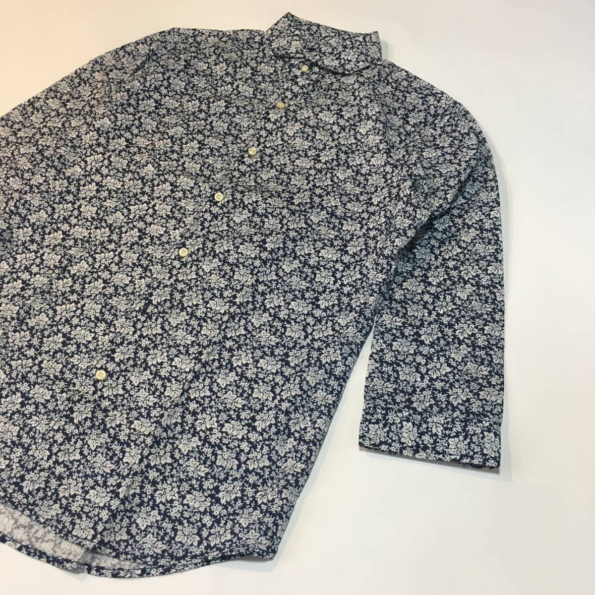 美品 SIMPLICITE PLUS 花柄 総柄 シンプリシテプリュス 七部丈 ボタンシャツ ブルー メンズ長袖 春秋物 BLUE ブルー 青