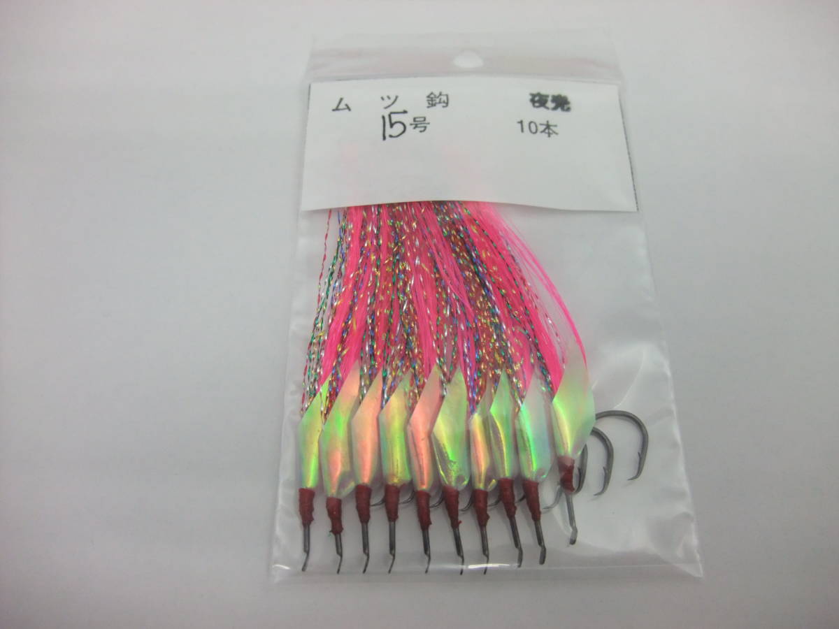 15PYO ムツ15号毛針 ピンクフラッシャー 夜光オーロラシート付き 10本セット