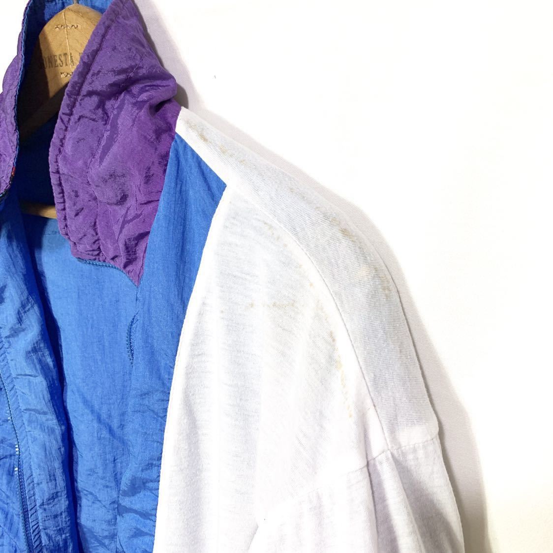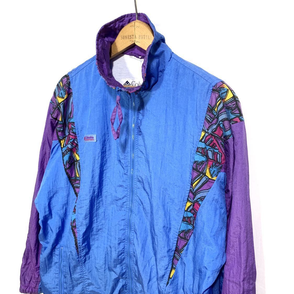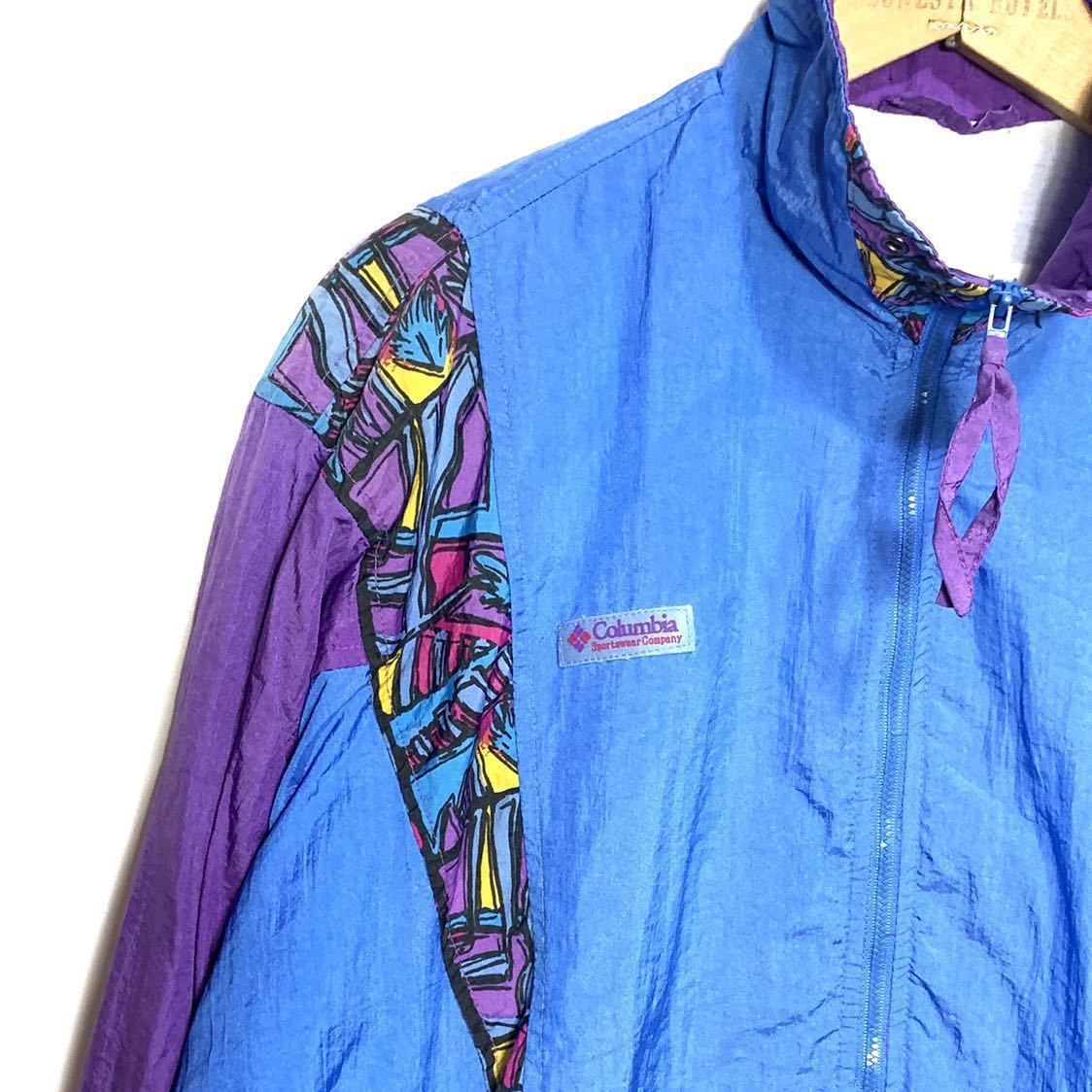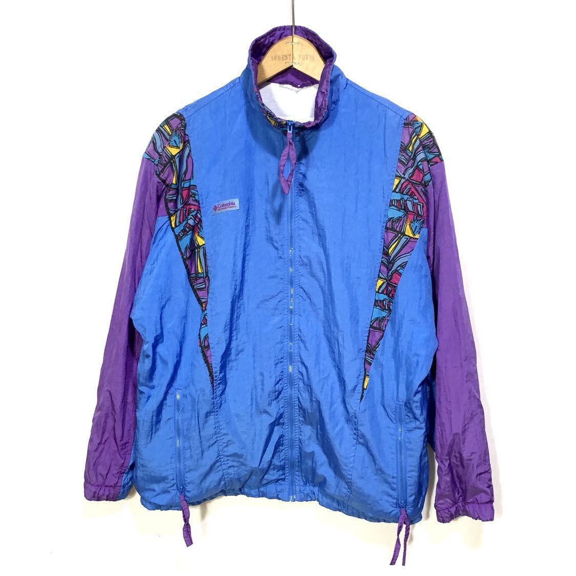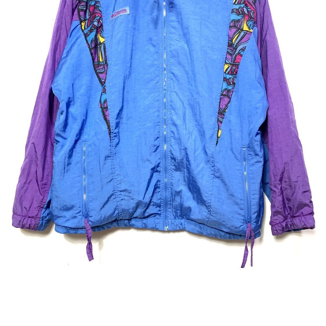■女性用 Columbia コロンビア ナイロン フルジップ 切り替え ジャケット ブルー パープル 柄 サイズM 古着 アウトドアウエア■
