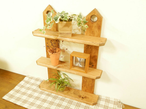 アンティーク風 三段ラックです。 こちらのお品はハンドメイド、手作りとなります。 サイズ、詳細 幅45cm×高さ60cm×奥行き11cm 一段目の高さは19cm 二段目の高さは18.5cm (奥行きは共に9cm) となります。 ※ネジは埋め込み処理をして隠しています。 同梱発送について。 ・他に出品されているセット商品との同梱発送や取り置きにも対応致します。 同梱発送の場合は、下記の送料表より+400円となります。 ※こちらの商品は「かんたん取引」で出品しておりますので、 複数個ご落札頂いた際は、同梱送料をお知らせいたします。 ※商品ラインナップは随時変更しておりますので 在庫が無くなり次第、再出品を行わない場合があります。 7セット以上の同梱発送をご希望の個人、業者の皆様へ。 まとまった数の商品をご希望の方は、 質問欄からその旨をお知らせ頂ければご案内させて頂きます。 | ||||