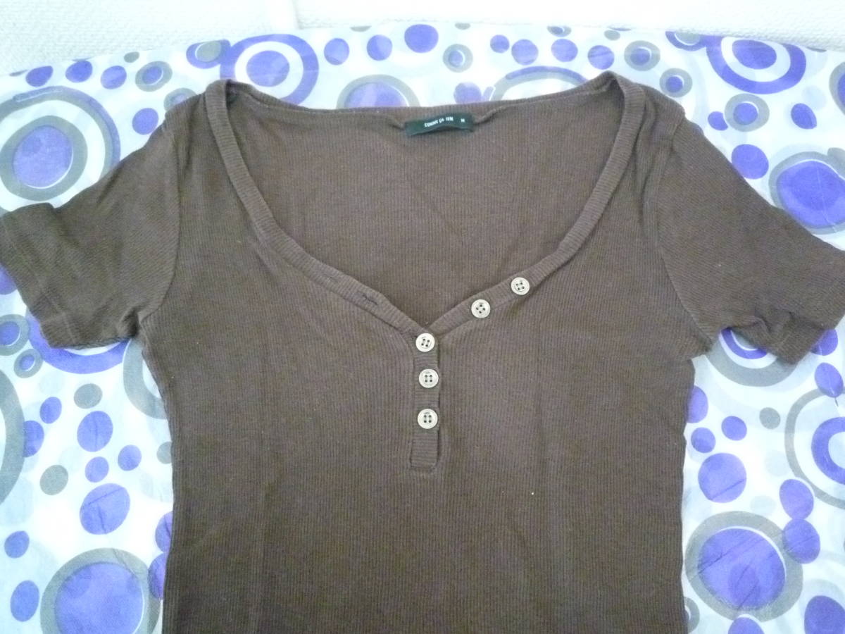 ★コムサイズム 半袖トップス カットソー リブ素材 こげ茶(M)