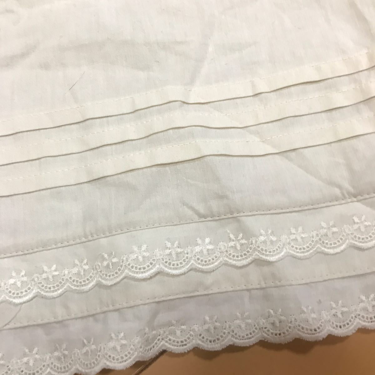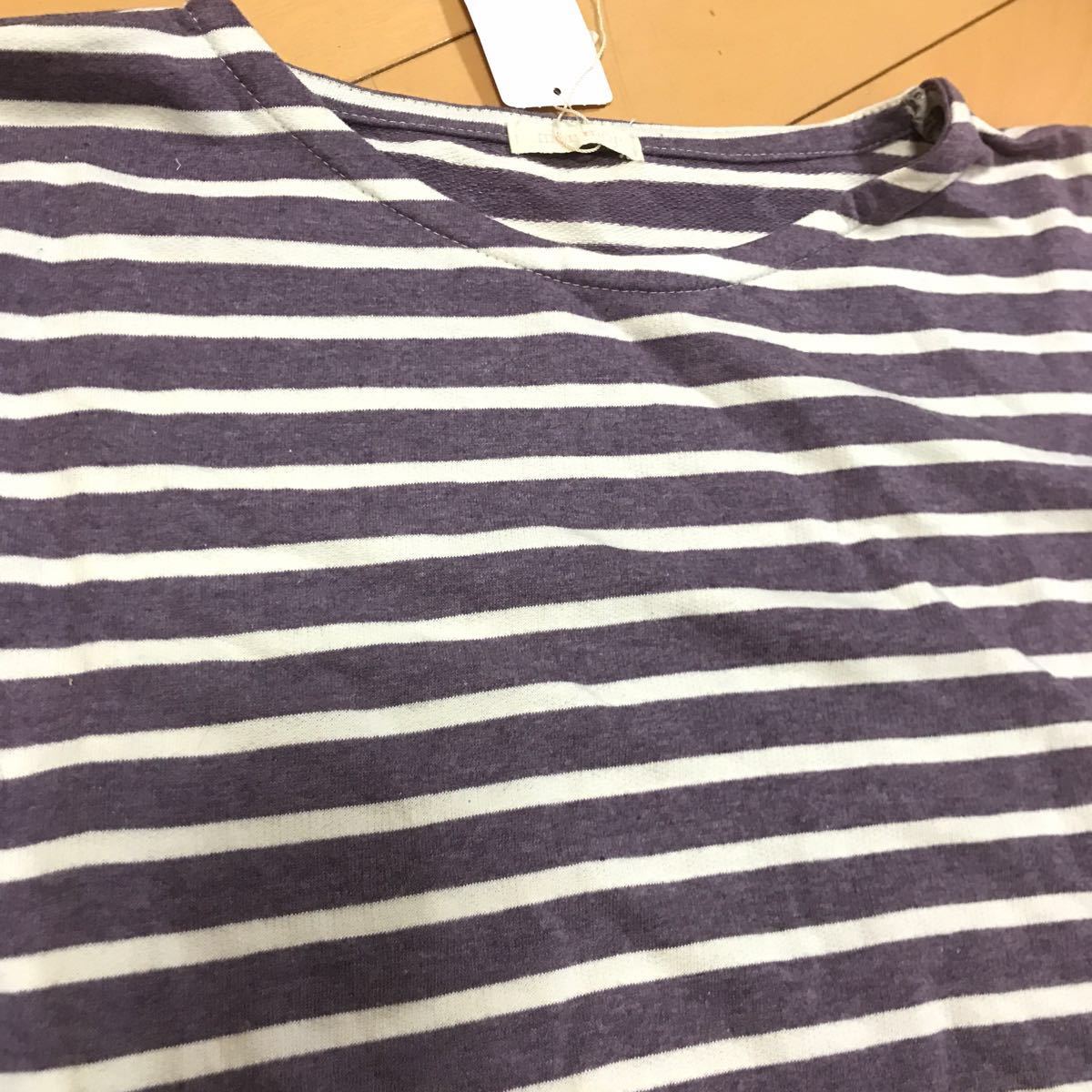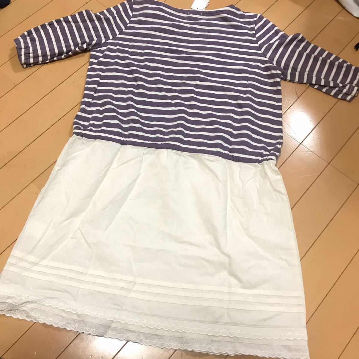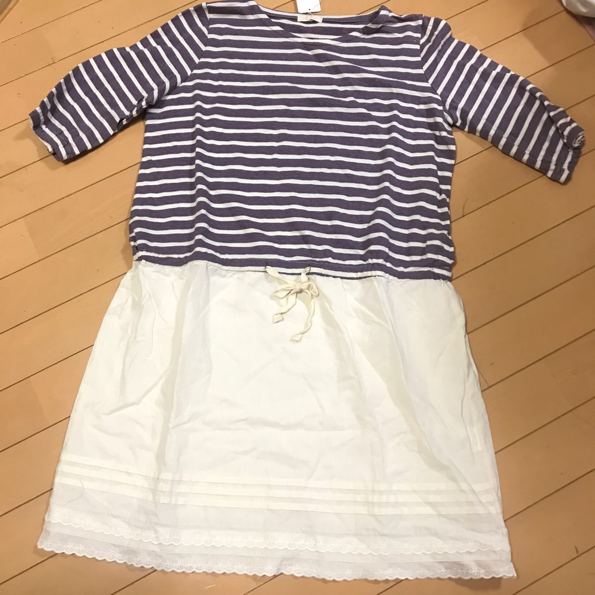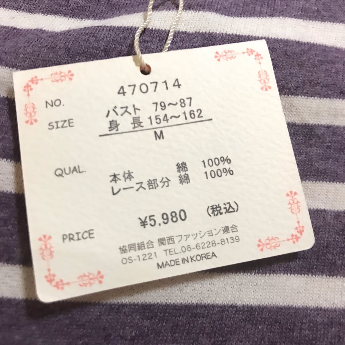 ◆上部パープルのボーダーに下部はコットンのスカラップレースが可愛い五分袖チュニック♪ウエスト絞れるリボン付