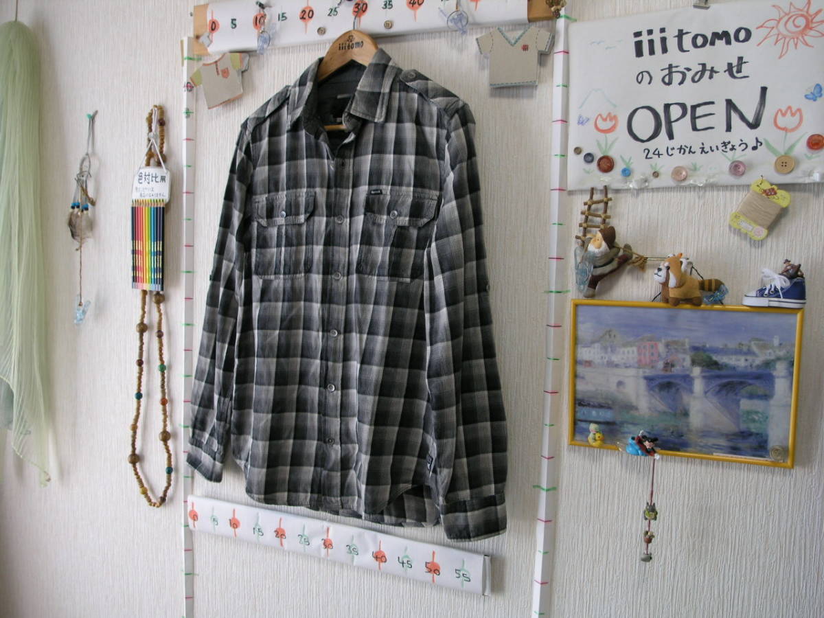 商品の補足説明(主観的な内容も含む) Usedで普通程度の使用感がありますが、気になるような汚れや傷はなく、襟・袖もきれいです。 初めからとは思いますが、内側のタグが、ミシンで後から付けたようになっています。 全体的に色あせたような配色で、ビンテージな雰囲気です。 タグ表記は【S】サイズですが、大きめ(L位?)だと思います。かならず3枚目の寸法写真でサイズをご確認ください。 |