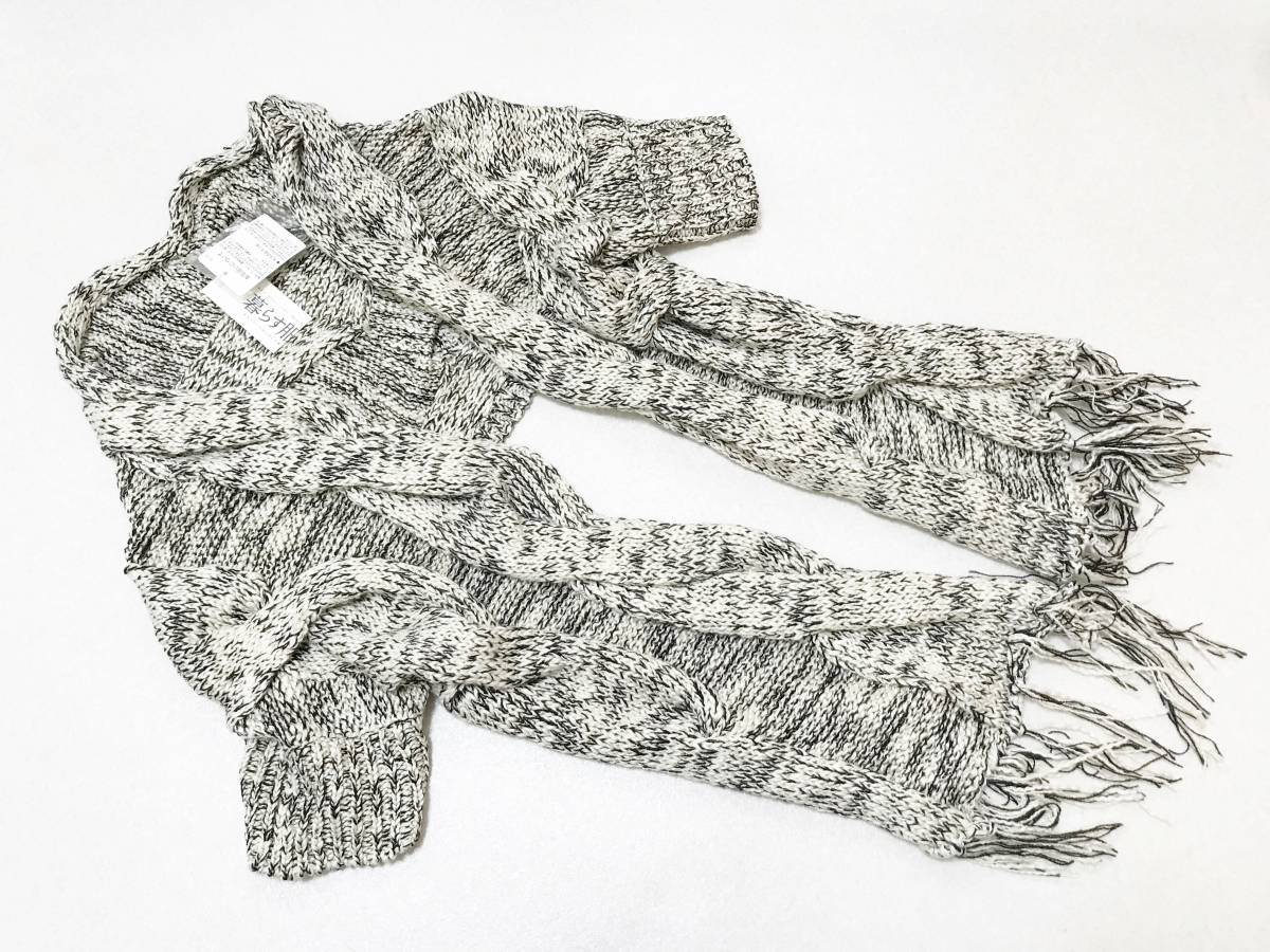 暮らす服 サイズ表記:M バスト:79-87・身長:154-162 お色め:黒xオフホワイト 系 アクリル100% ●平置き採寸●(参考) 肩幅(肩線~肩線)/約42cm 身幅(脇下)/約40cm 袖丈/約27cm 着丈/約23-66cm *前は付属のピンでの開閉になります 未使用品ですが、自宅保管にご理解頂ける方のご入札ご検討願います。 ◆細かい点(ご利用に問題のない程度の小さな傷・匂い・汚れ・シワ等) は素人検品の為記載漏れがあることをご理解願います◆ ◆洋服のようなものは保管・発送時のしわをご理解ください。 ◎照明・パソコンの色彩環境等の違いから 掲載の画像と実物の色味が異なる場合がございます。 ★送料について★ ●日本郵便・・・料金については下記「配送方法と送料」をご参照願います。 ◆ゆうパックご選択の場合、何点落札されても同梱でお値段変わりません◆ *局留め賜ります *定形外は簡易包装になります。ご選択の場合はご了承ください。 ◆お支払いは【落札金額+送料】です。 送料がかかることを考慮した出品開始価格を設定しております。 ◆土日祝はお休みを頂いております◆ ◆平日11時頃までのご入金確認で当日発送を心がけておりますが 対応出来ないときもありますので ご入金確認後の翌日~3日程度の発送でご理解ください◆ ★長期のお休みは自己紹介にて記載しております。 お手数ですがお急ぎの場合は一読お願いします。 | |||