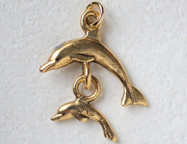 イルカの親子のピューターチャームです。