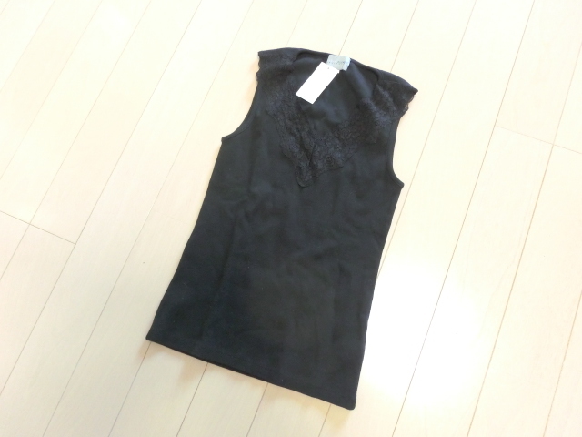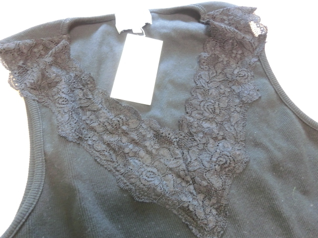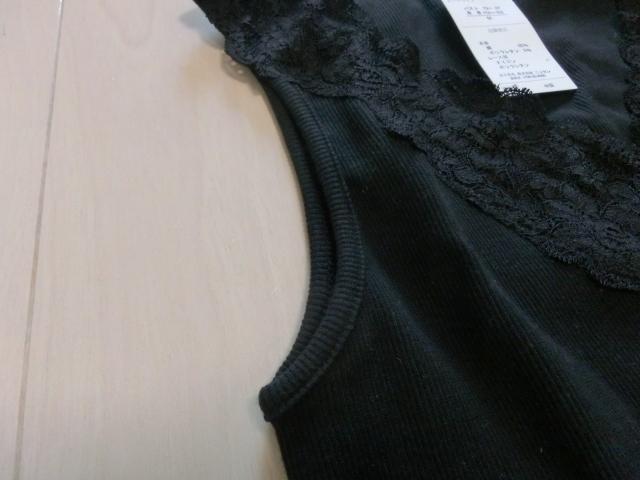 [タグ付き] レースタンクトップ 綿 黒 Vネック