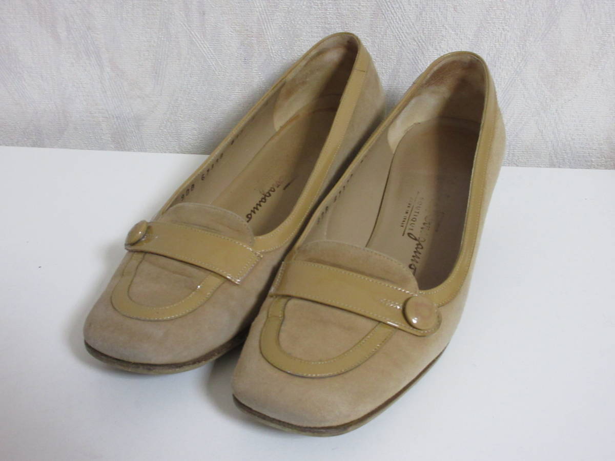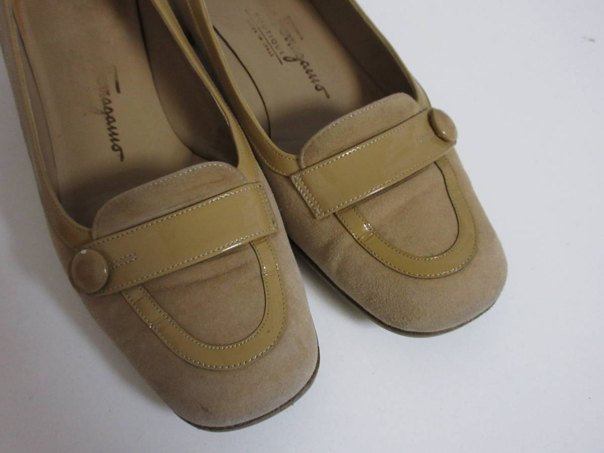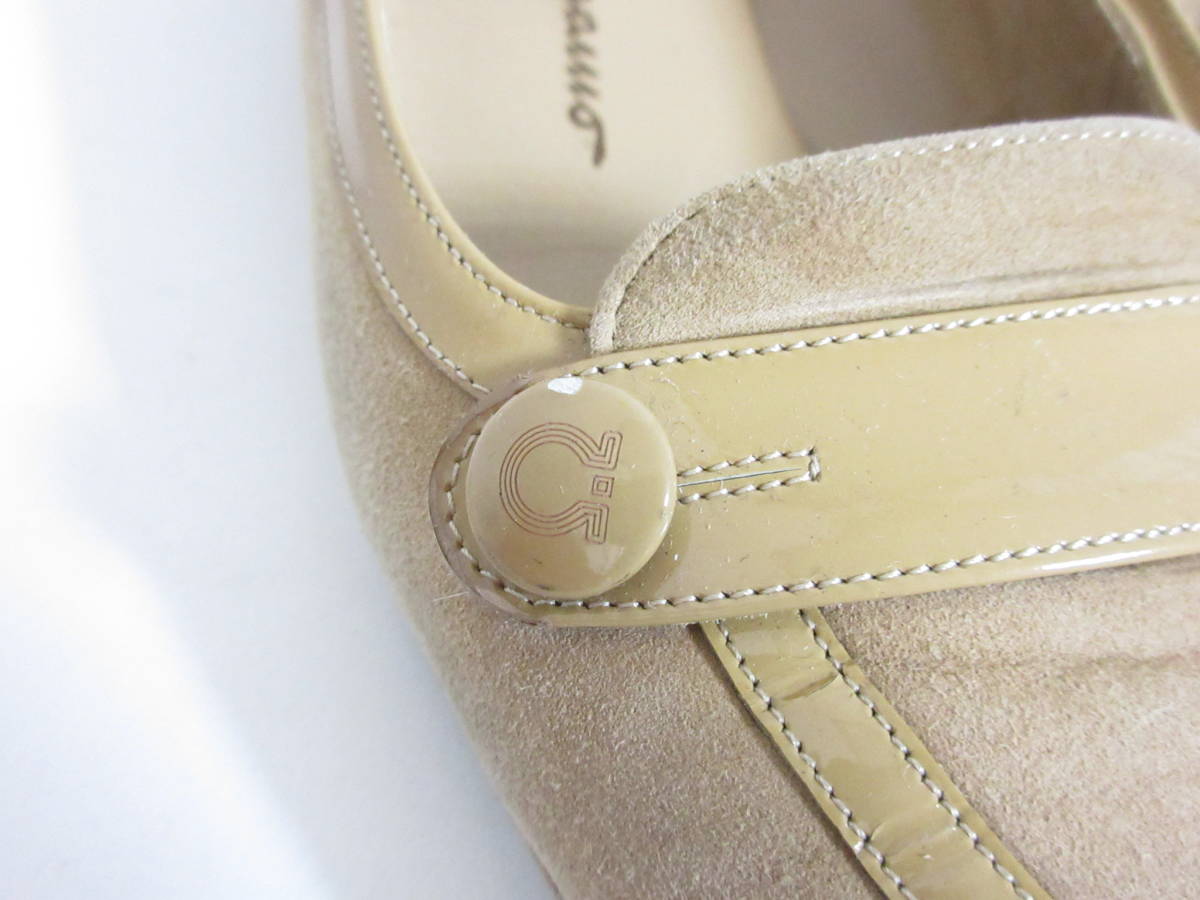 サルヴァトーレフェラガモ スエード × エナメル レザー パンプス ベージュ 5D 南2062