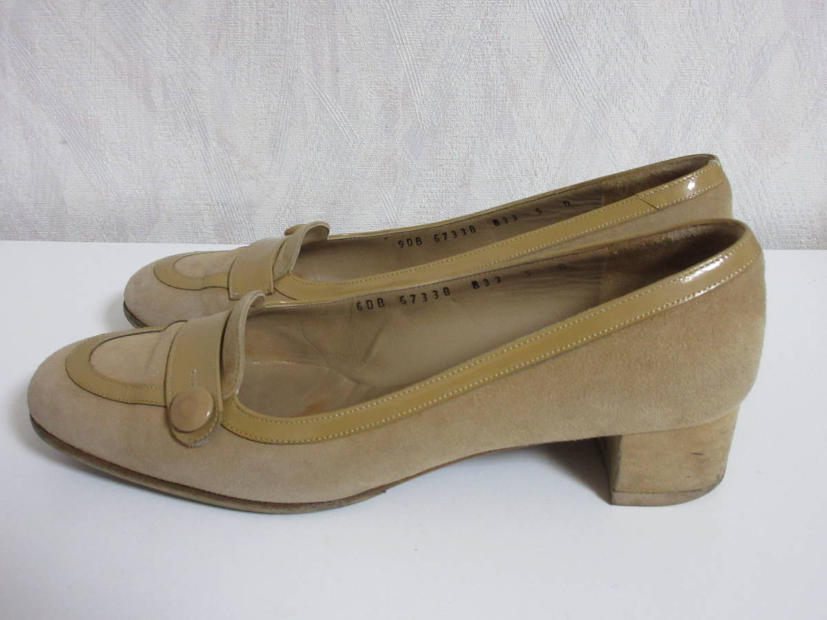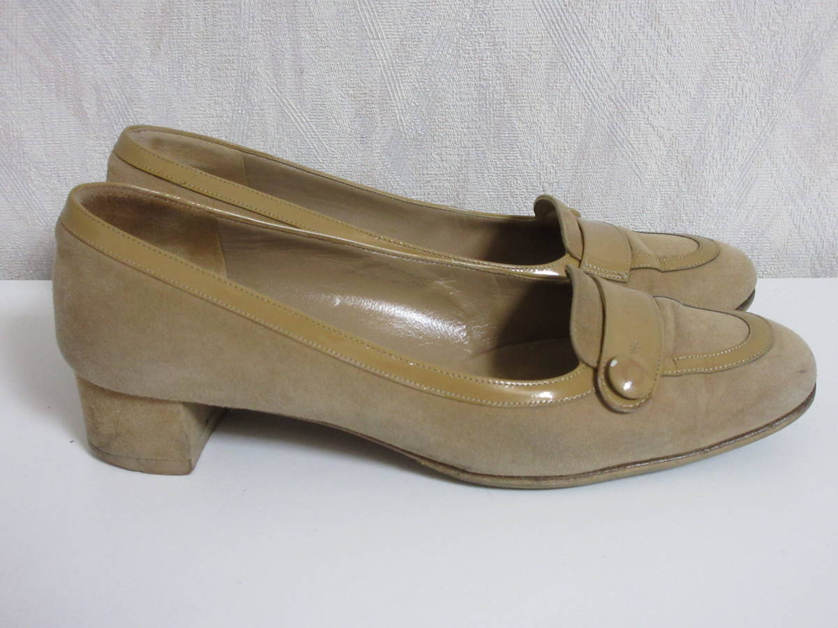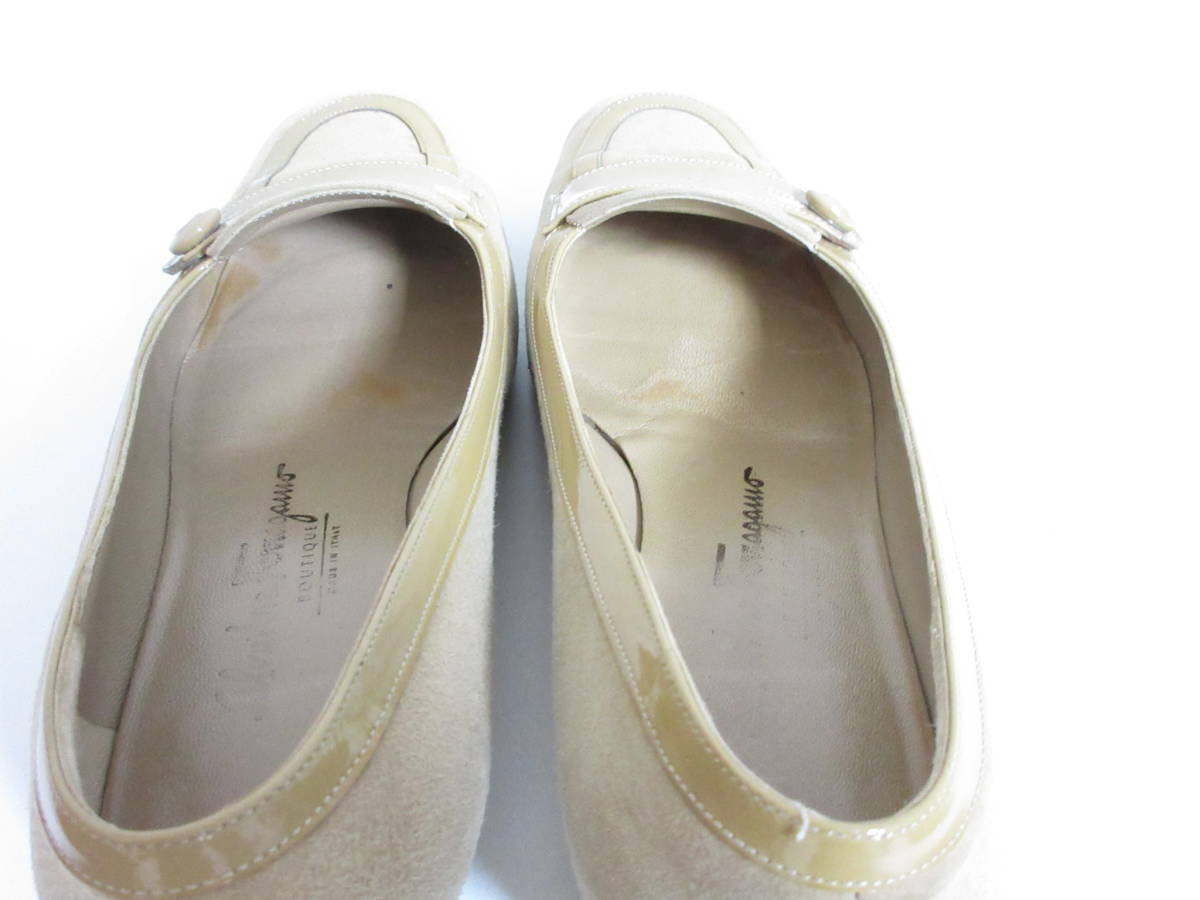 サルヴァトーレフェラガモ スエード × エナメル レザー パンプス ベージュ 5D 南2062