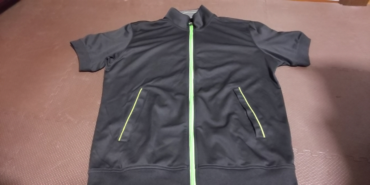 新品ユニクロ、黒、ライン蛍光色、半袖ストレッチトップス