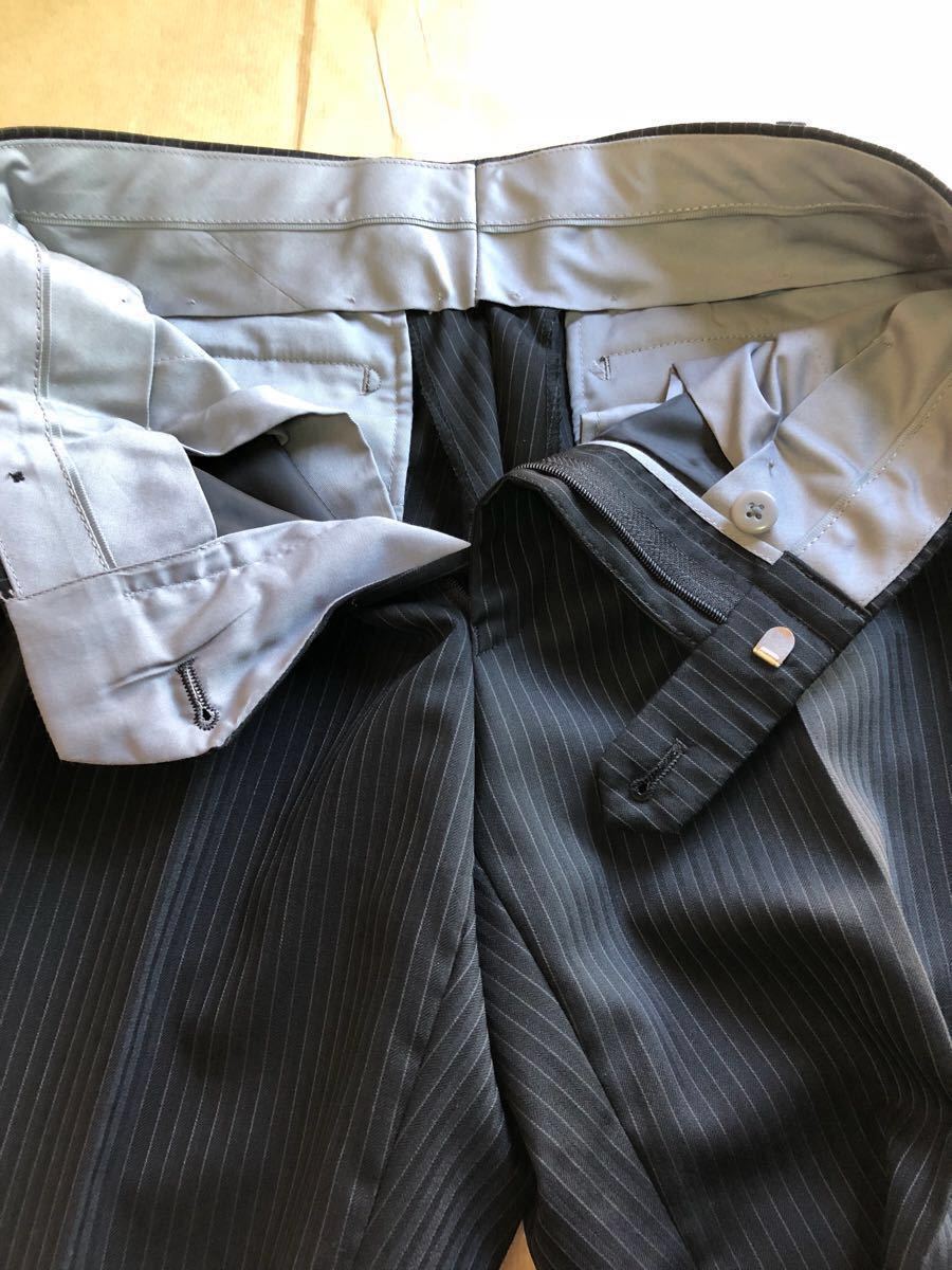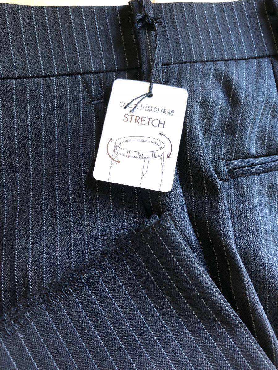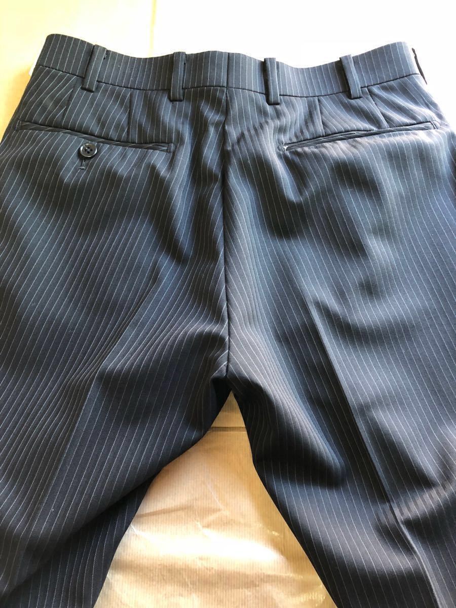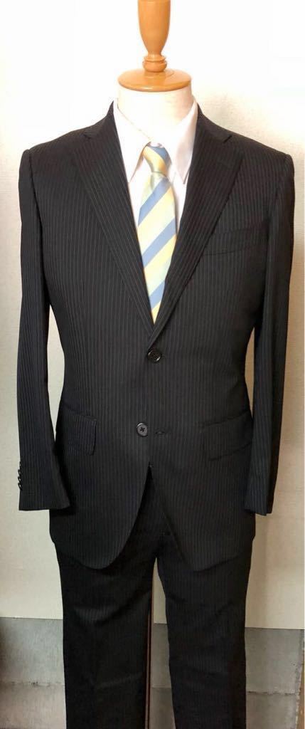 サイズ⇒Y4(胸囲90、ウエスト74、身長165) ジャケット⇒着丈69.5cm、肩幅43cm、身幅49cm、袖丈57.5cm パンツ⇒ウエスト74cm、股上(横計測)22.5㎝、ワタリ幅29cm、裾幅19.3cm、股下89.5cm ※測り方による誤差は生じます。 色・柄⇒黒・ストライプ 表地⇒毛96%、ポリエステル4% 裏地(総裏)⇒ポリエステル 袖裏⇒キュプラ ベント⇒サイドベンツ ステッチ⇒入り 台場⇒本台場 袖ボタン⇒4個 タック⇒ノータック 商品状態⇒新品 着用季節⇒秋冬物 R90-400-102363 |