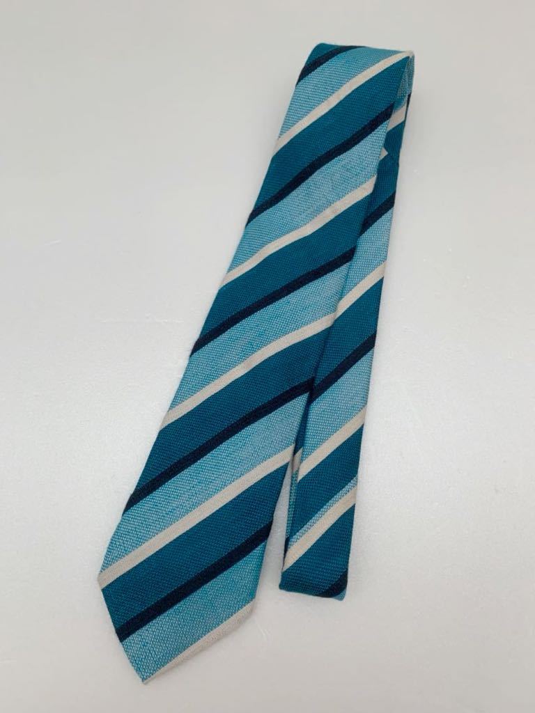 stefanobigi イタリア製シルクリネンネクタイ ブルー みずいろ ホワイト 白 ステファノビジ レジメンタル