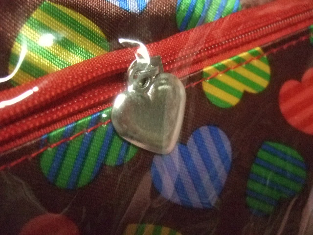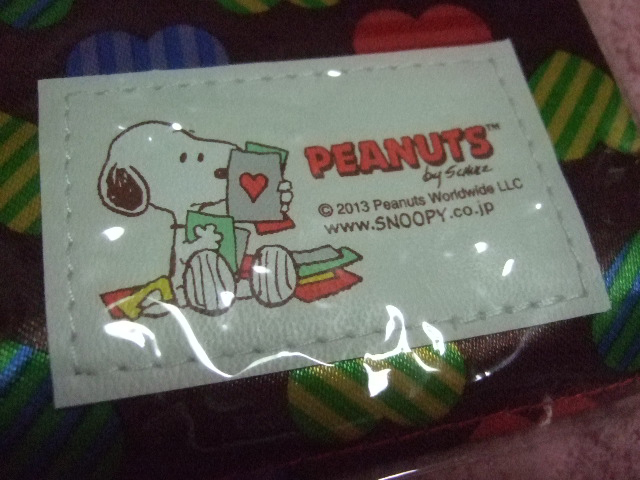 スヌーピーのポーチ(ハート柄,横:25cm x 縦:20cm)。