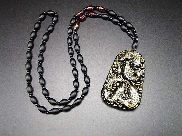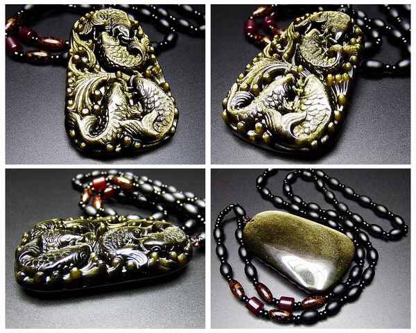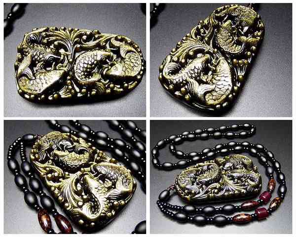 超迫力極上ゴールドオブシディアン鯉彫りネックレスデカ厳選天然石 石街