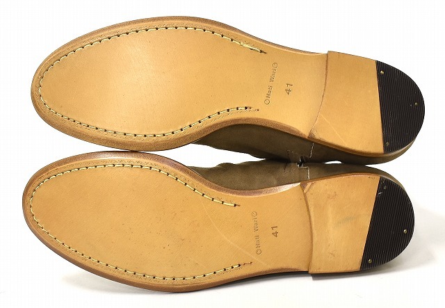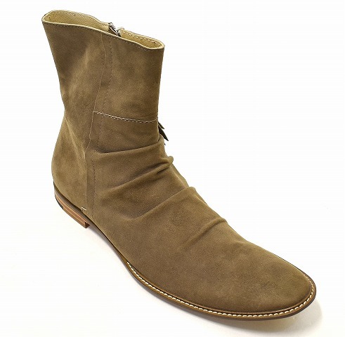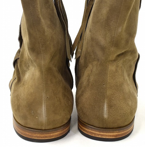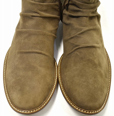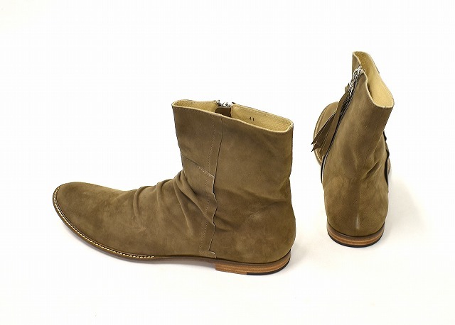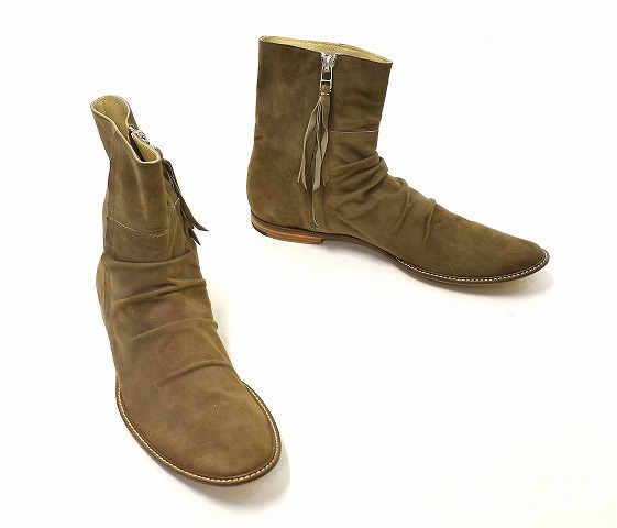 「RinR Hati Wari」のシワ加工ジップアップブーツです。 ・素材:スエード。 ・カラー:ブラウン。 ・サイズ:41。 実寸・アウトソール 約30cm・幅 約10cm。(多少の誤差はお許しください) LHPをはじめ、感度の高いセレクトショップ等で取扱いがあった「HATIWARI」のスエードブーツです。 細身のシルエットとシワ加工が特徴。 サイドジップ仕様で、楽に脱ぎ履きが出来ます。 保管のみの未使用品ですが、スエードに多少の毛羽立ちやアタリの見られる部分がありますが、まだまだ問題なく履いていただけます。箱あり。 かなりお値打ちだと思います。この機会にぜひ!。 他にもいろいろ出品しています。 管理番号:191906Y-084217 ★ PD242503-400 |
