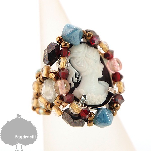 商品名:YGG★オシャレ★ハンドメイド 肖像画柄 ビーズ リング 15号 カメオ 指輪 上品 レディース 母の日 プレゼントに