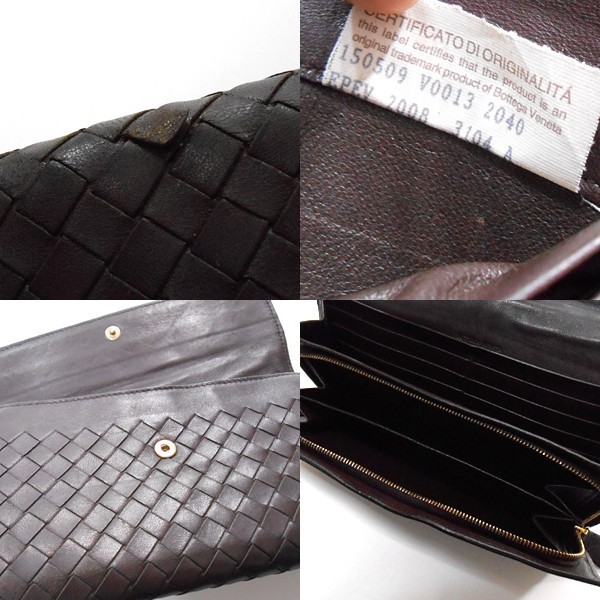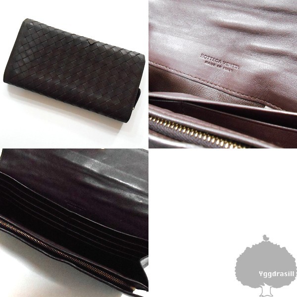 YGG★ボッテガヴェネタ イントレチャート 長財布 茶 BOTTEGA VENETA ウォレット 男女兼用 ブラウン 編み込み レザー 本革
