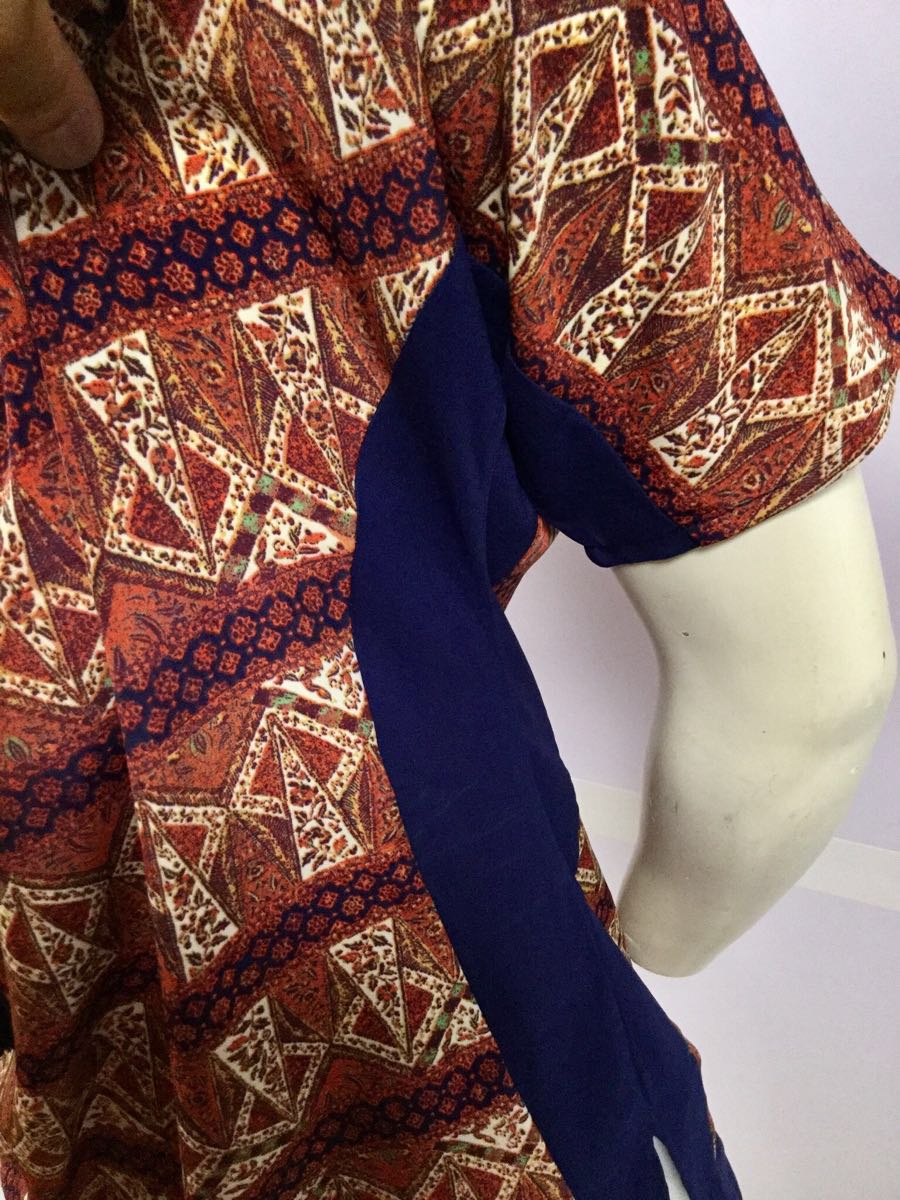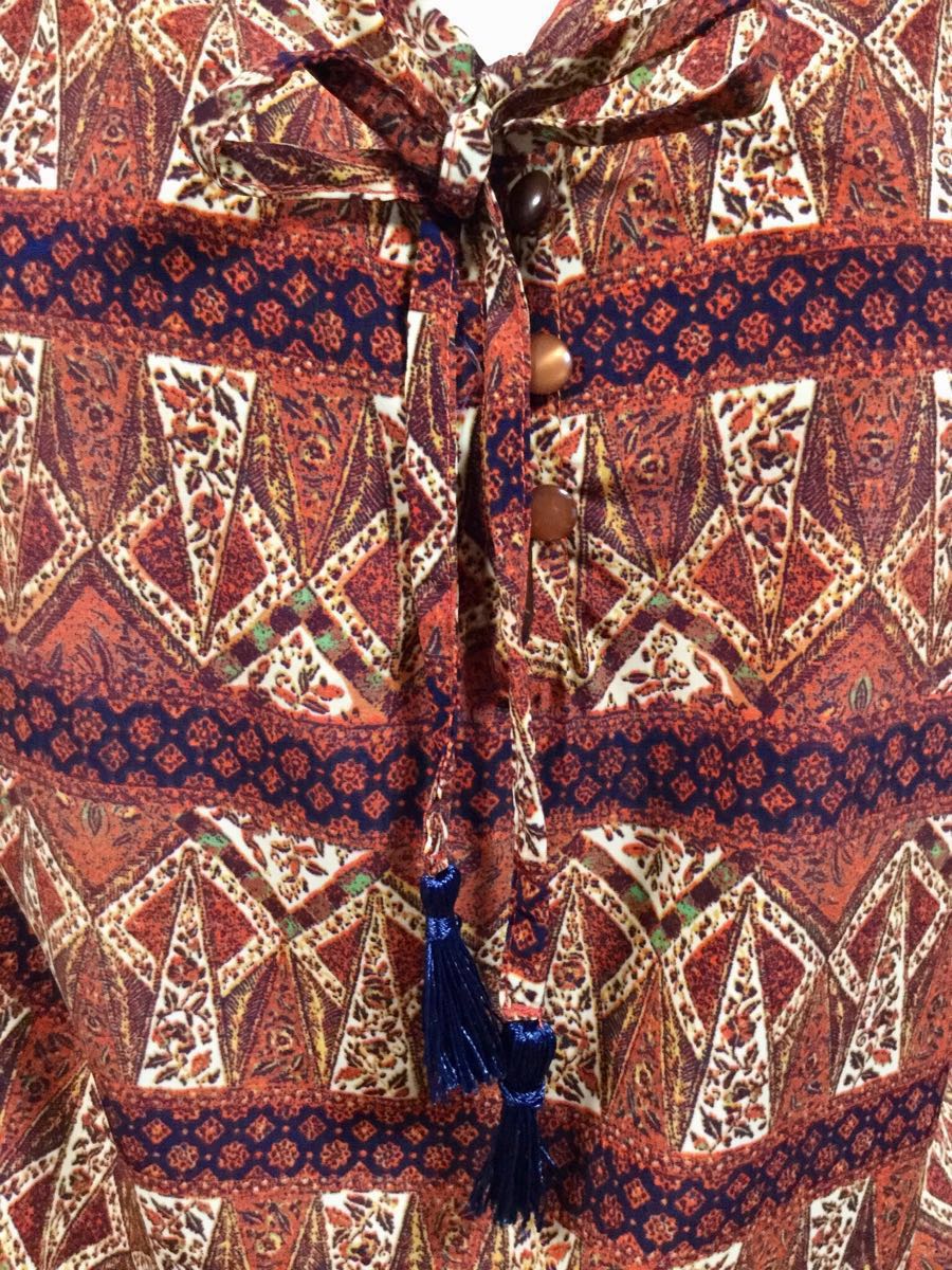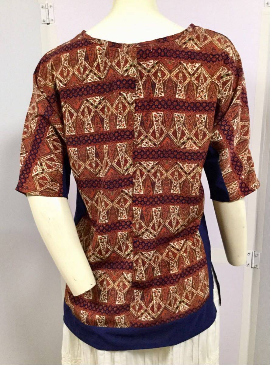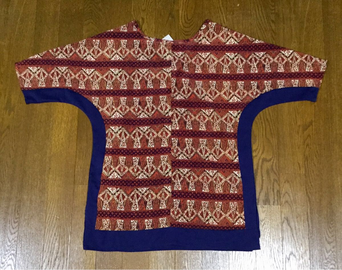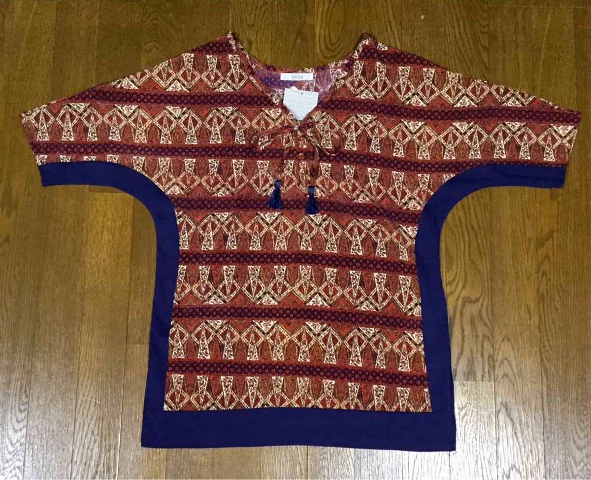 全体としてシルエットは大きめで、花柄×幾何学模様のデザインがネイティヴ風にまとまっていて、インパクト大のアイテムです。