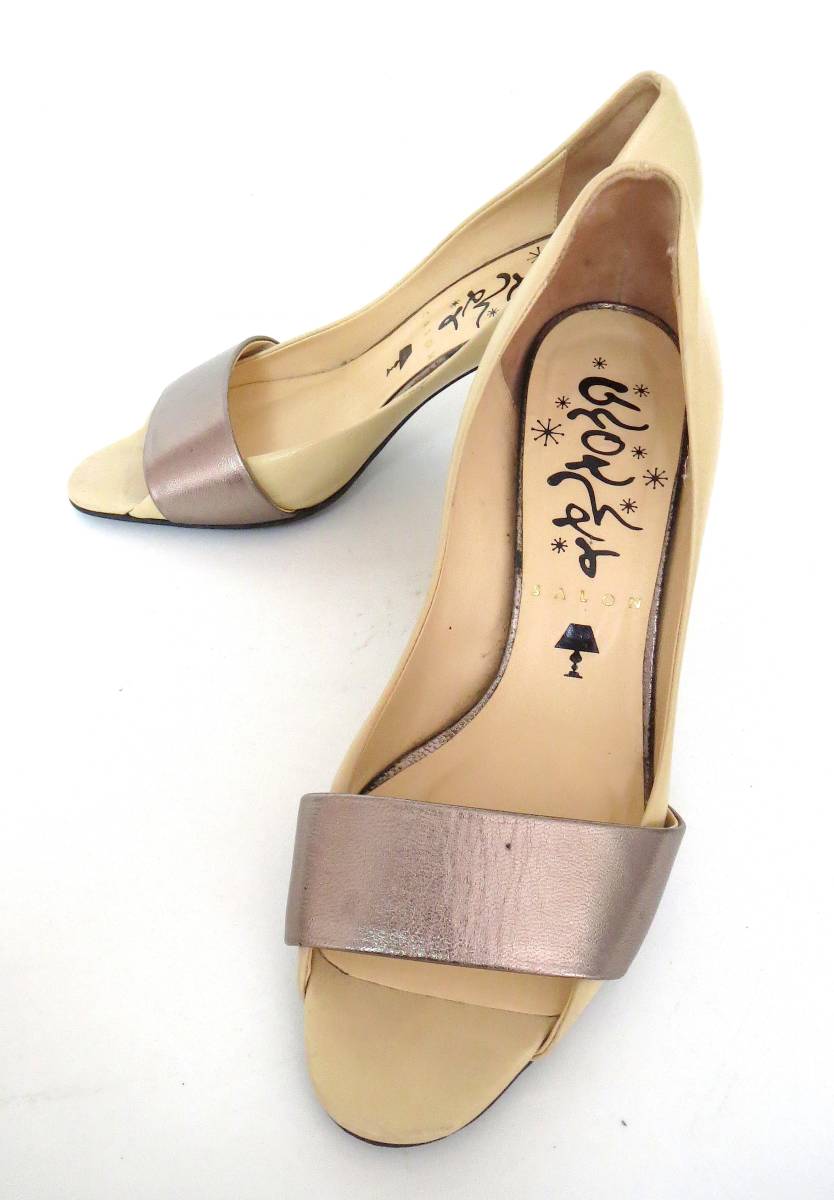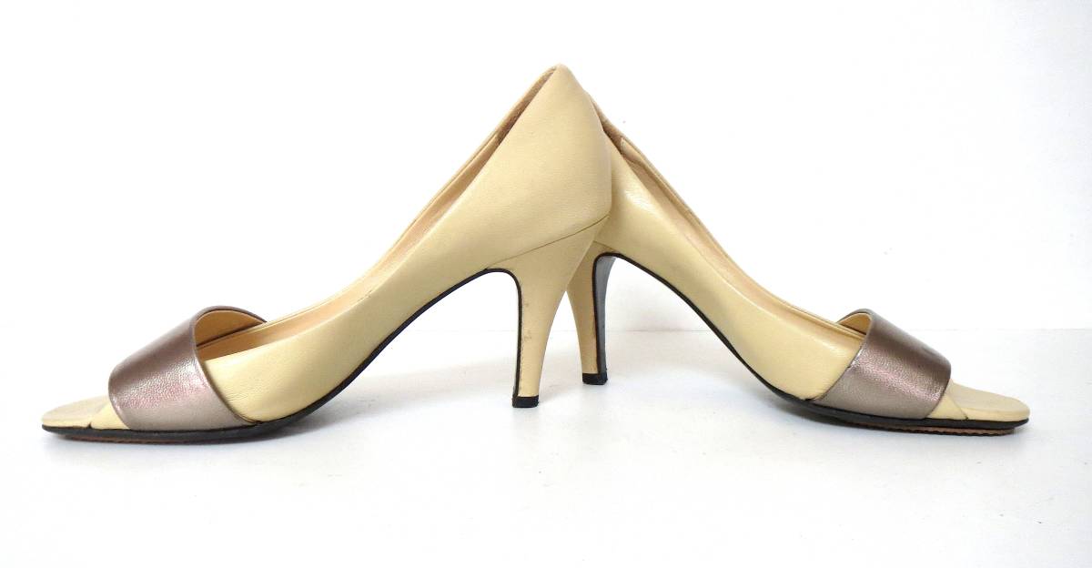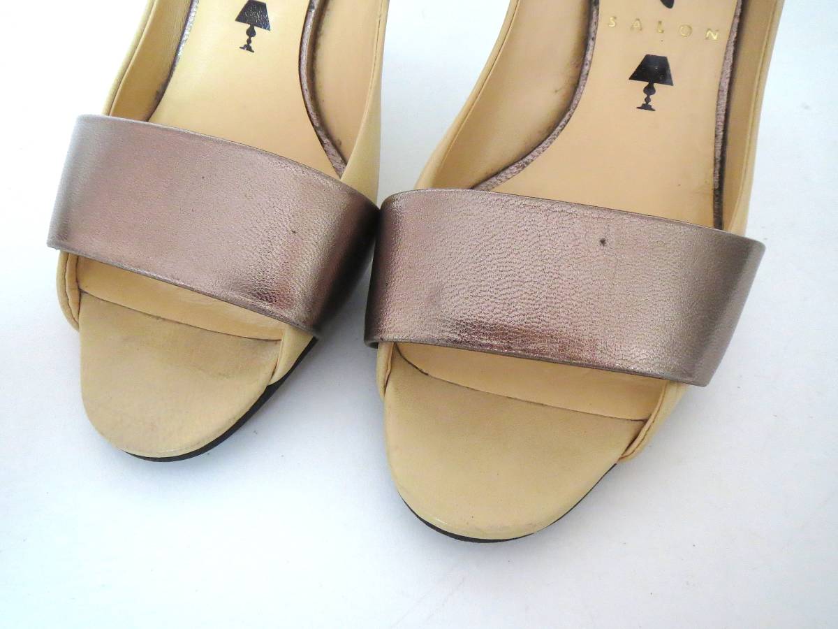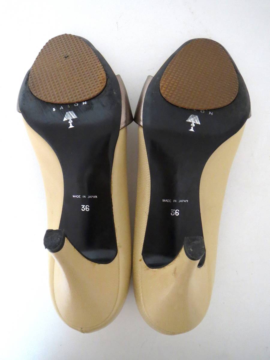 二点落札で送料無料! A31 日本製 Another salon アナザーサロン ベージュ×ブロンズ パンプス 36 靴 サンダル レディース