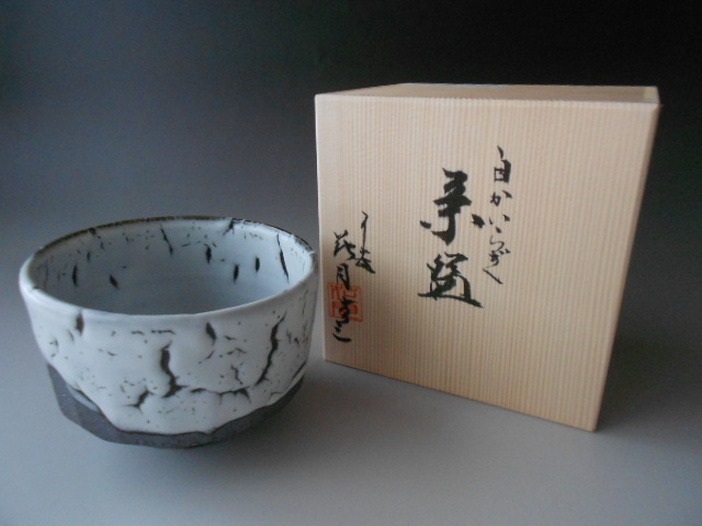 茶器! 原花月 白かいらぎ抹茶碗   新品 木箱 京焼 茶道具