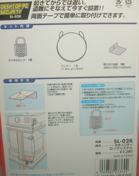 大がかりな防犯はできない方でも、簡単な取付けで、コンピュータを守ります。