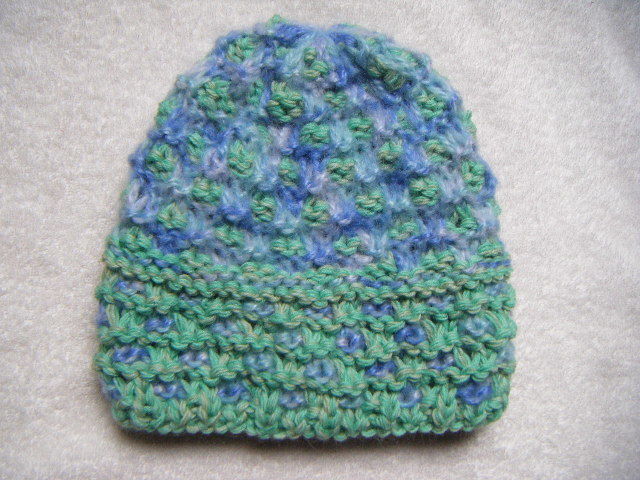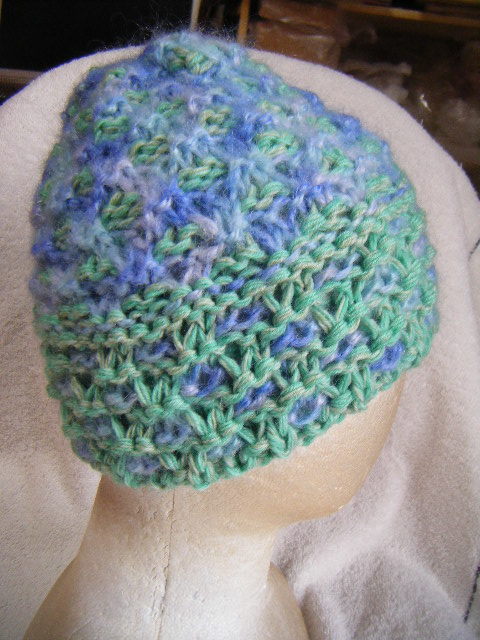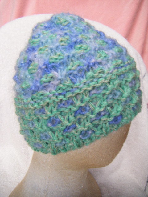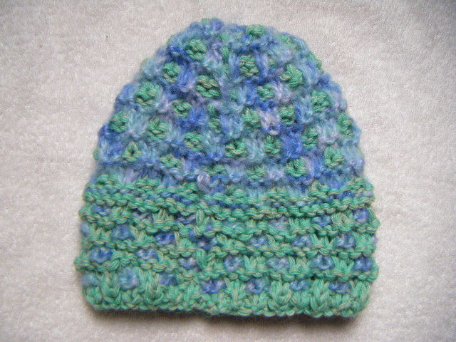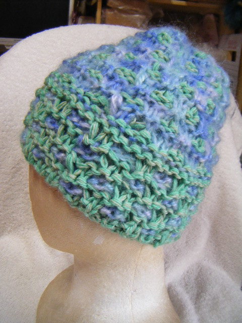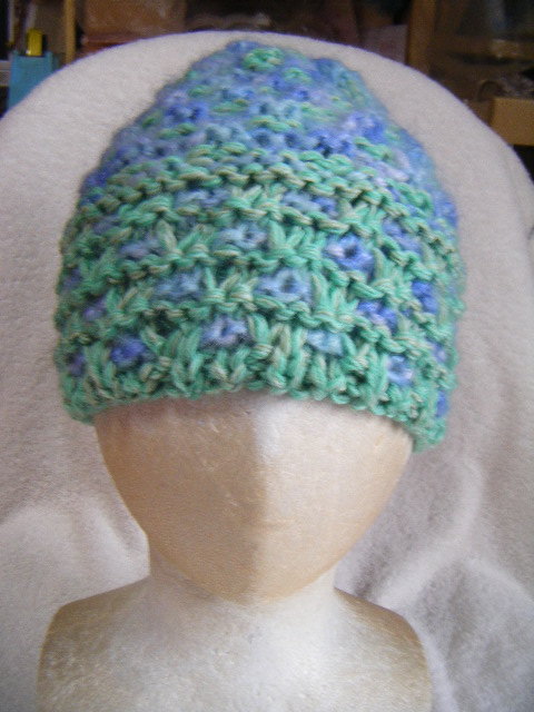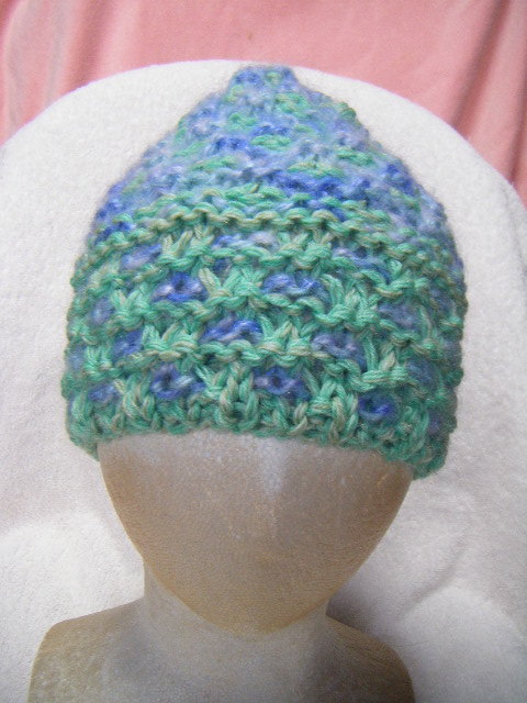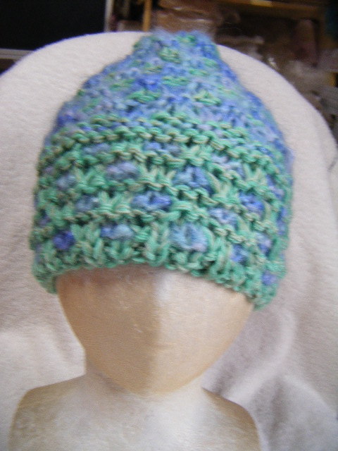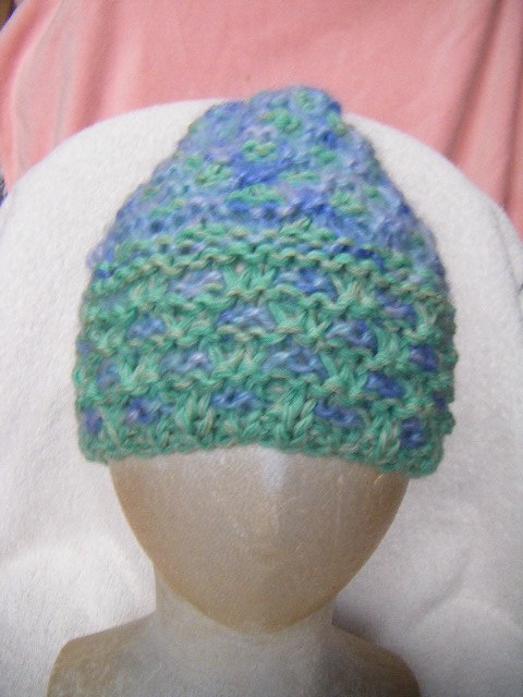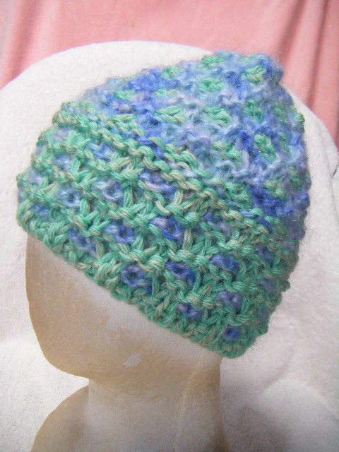 冬*比較的厚手*薄黄緑系と薄青系のグラデーション・マルチ*手編み男女兼用キャップ   A