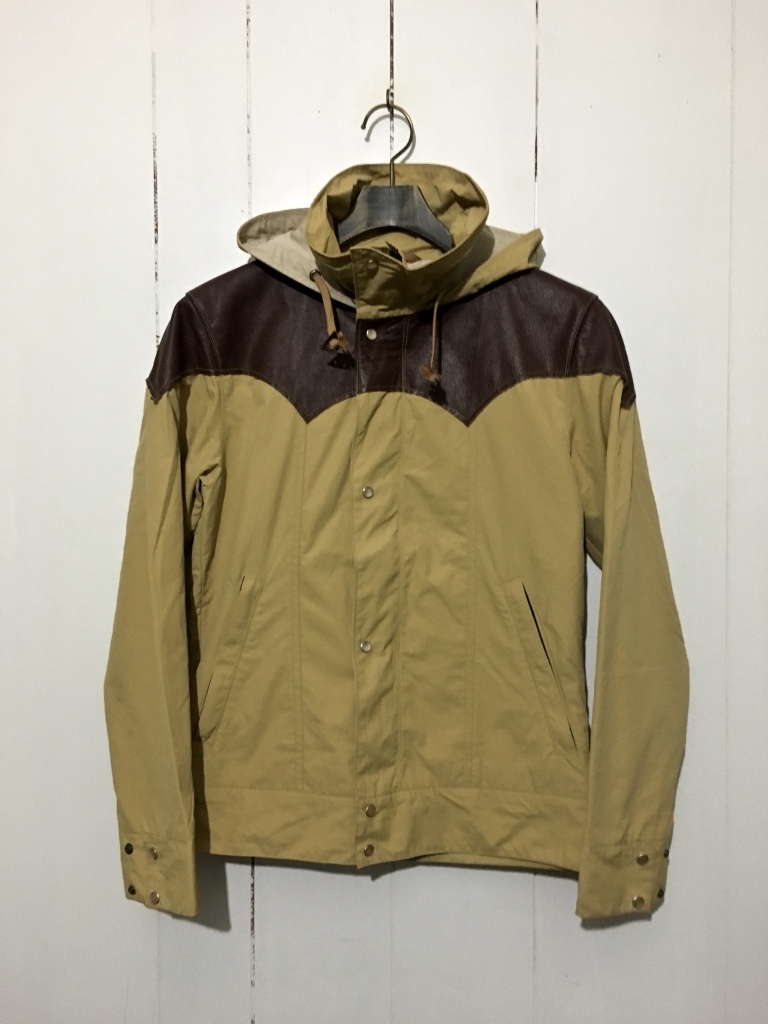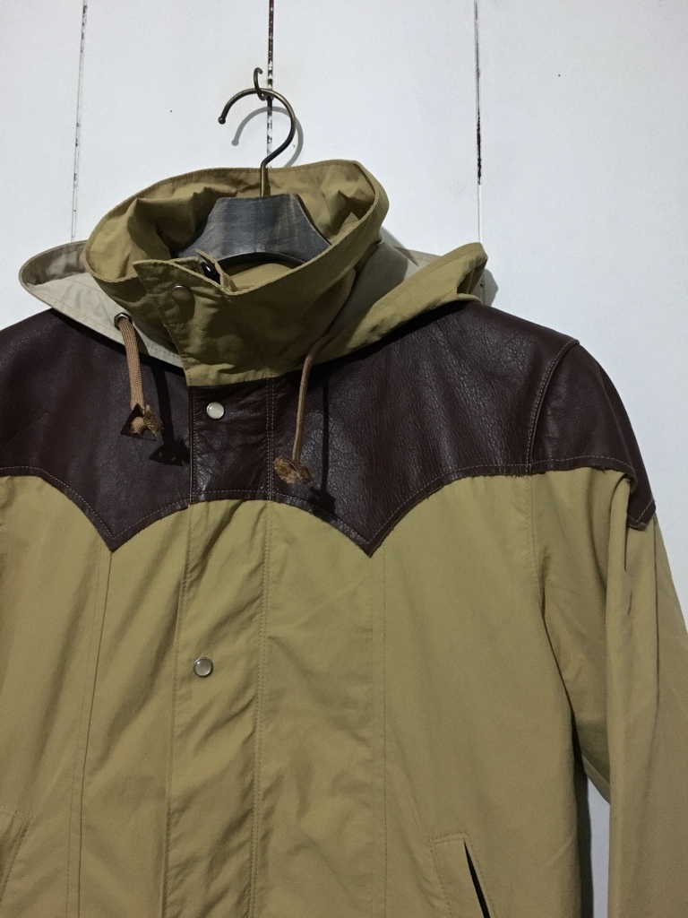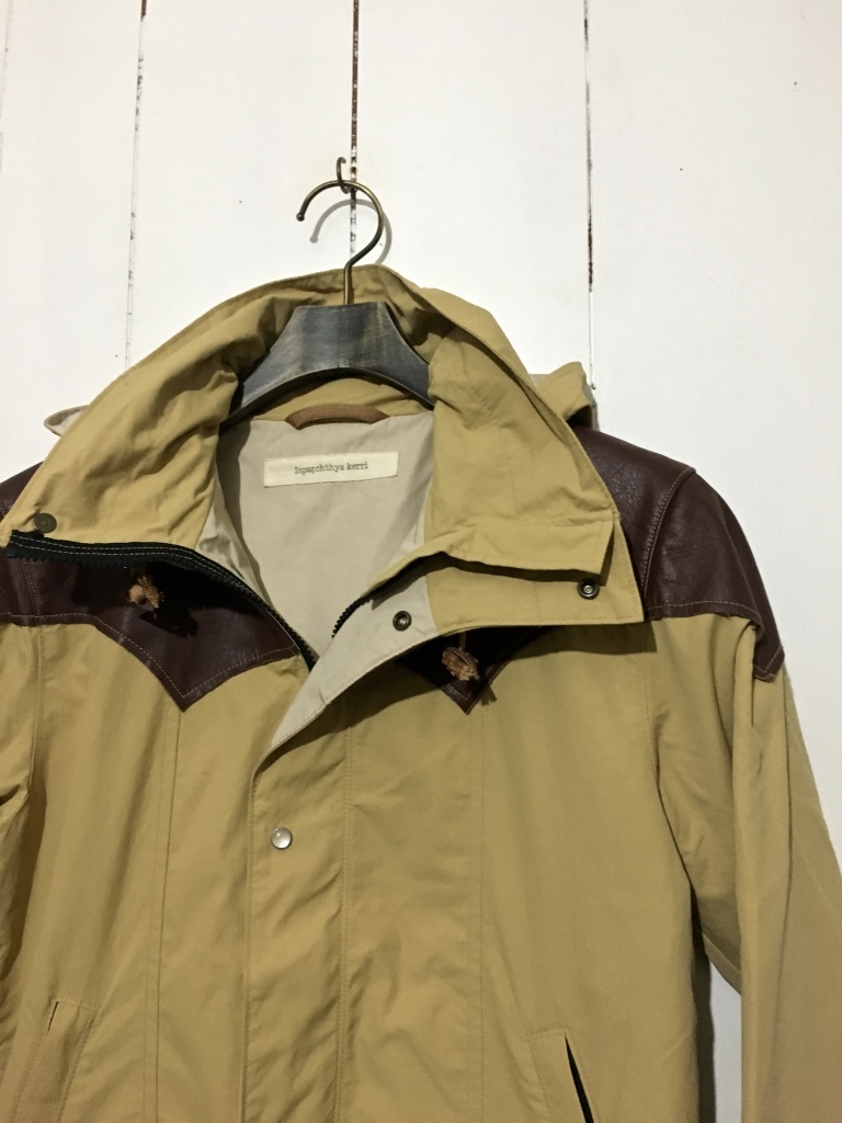 美品☆inpaichthys kerri インパクティスケリー レザーヨーク マウンテンパーカー ナイロンジャケット S 牛革 本革 茶色