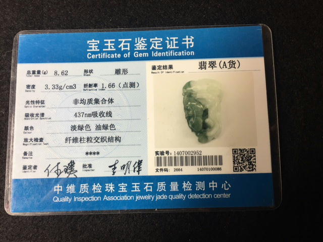 | 商品説明 | A貨翡翠の片側に縁起物の蜥蜴(トカゲ)と如意を彫った上質翡翠彫刻細工です。 宝玉石鑑定証が付いています。 珍しい上質翡翠彫刻細工なのでコレクションにお勧めです。 高さ 約46mm 幅 約27mm 厚さ 約11mm(一番厚い箇所) 重さ 約18g ※若干の誤差が生じる場合がございますので、ご了承下さい。 表面の小さな擦り傷も殆ど無く、つや照りもある美品です。 天然石A貨翡翠+縁起物のパワーで魔除けやお守りとして持ち歩いても良いものです。 上側に紐通し用の小さな穴が開いていますので、根付け、ペンダントトップとして使用してもお洒落です。 その他、カケや修理などは無く、良い保存状態です。 【お取引について下記をご理解ください】 ●商品の価値判断については個人差がありますので、商品の時代や価値はお客様自身で判断・鑑定して頂きたいと思います。 こちらで価値や時代を素人判断してしまうと、古くない場合や時代を間違えた時にトラブルやご迷惑をお掛けしますので、商品の価値や時代について表記いたしませんし、質問にも回答いたしませんのでご了承ください。 ●こちらの撮影した画像と説明で判断できない方は、ご自身で納得できるように安く入札するか、他の出品商品をご検討ください。 ●ヤフー詳細情報の返品の可否にも返品不可を記載し、コレクション商品で新品ではありませんので中古として出品しています。 そのため、画像に写りにくい汚れや細かなスレなどがありますので、神経質な方の入札は大変申し訳ございませんがご遠慮頂きたいと思います。 ●撮影条件およびモニター環境により実物と写真では、印象に若干の相違いが出る場合がありますのであらかじめご了承ください。 ●当方、誠実に出品しているつもりでございますが、 いたずら防止の為、新規ID・著しく評価の悪い方のご入札を取り消す場合がございますのでご了承下さい。原則はノークレーム,ノーリターンでお願い致します。 ●天然石のため、黒点・茶点があり、クラックやくもりが見られることがあります。 |