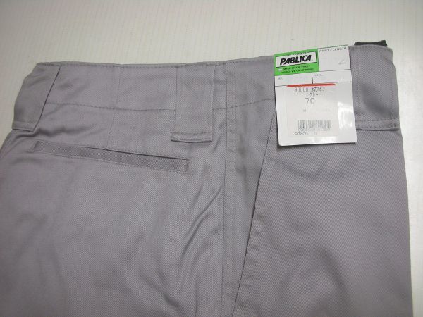 | 商品説明 | 表示サイズ: 70,5 (表示 70) 平置実測採寸: ウエスト:70,5cm(表示 70) 渡り幅: 30cm 腿幅(股下 10cmの所): 28cm 裾幅: 21,7cm 前股上: 29cm 股下(下より 3cmの所ミシンステッチ仕上げ済): 71,5cm 色 柄: シルバー silverグレー 無地 状態: 新品 素材: 綿 100% 年中着用可能なオールシーズン向き米式作業ズボン。Yポケット タック無しのノータックデザイン。タフな耐久性に綿の優しい肌触りをプラスした、着る度に体に馴染んでいく、快適な着心地が人気のアイテム。 |