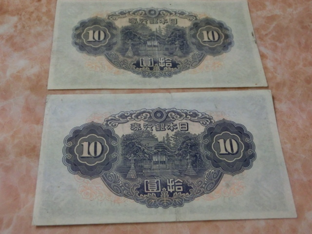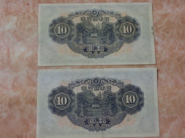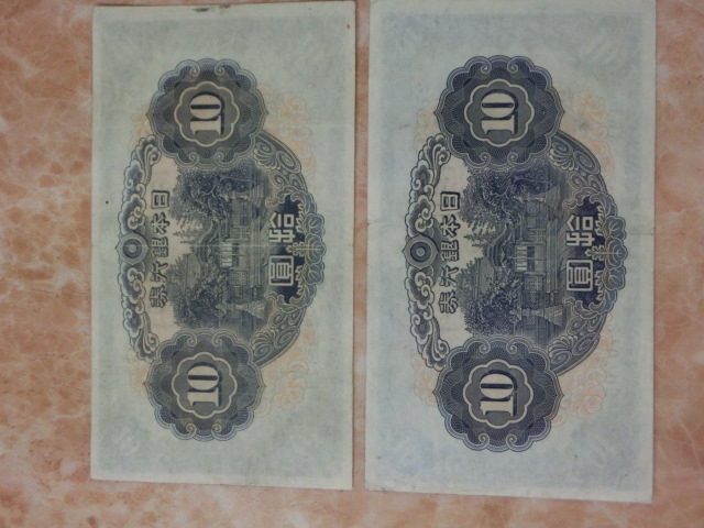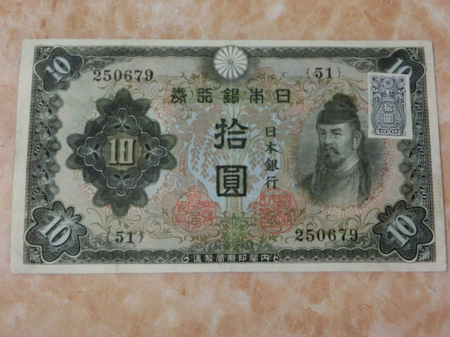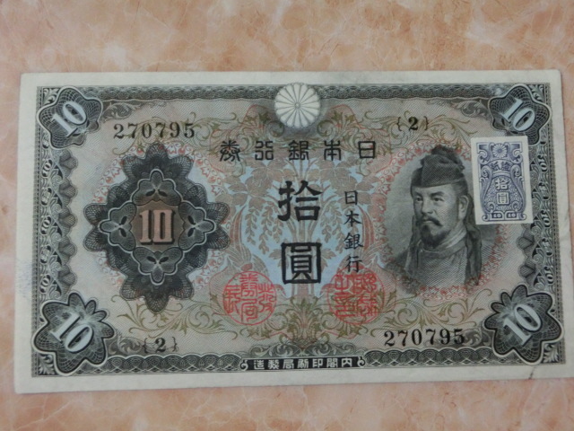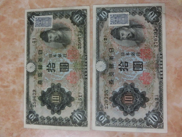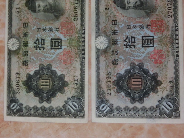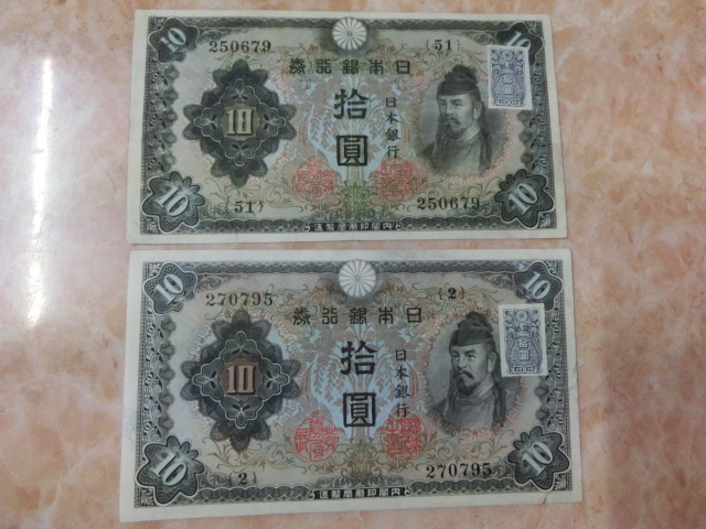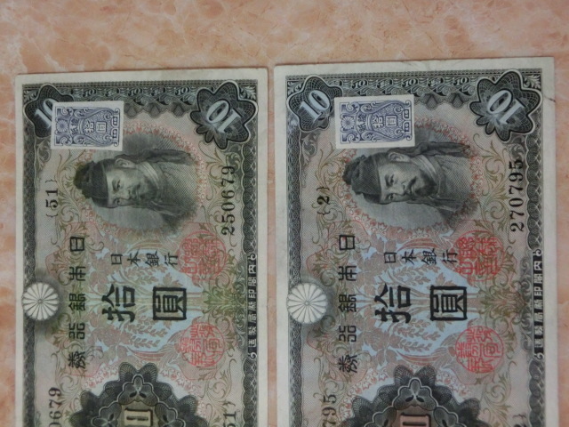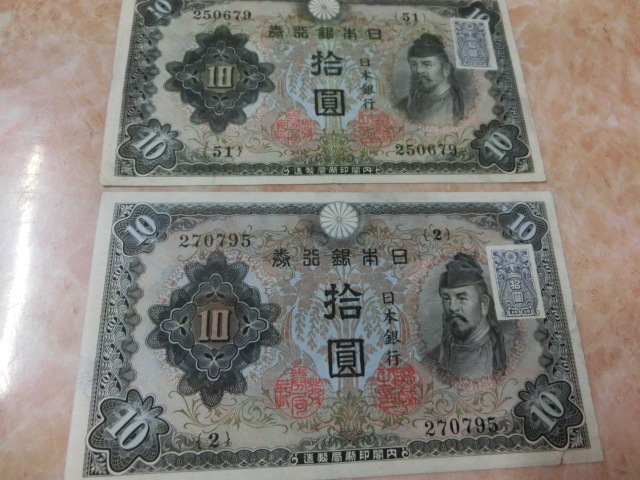 不換紙幣10円 2次10円の証紙付で初期組番号(2・51)を2枚セットです。