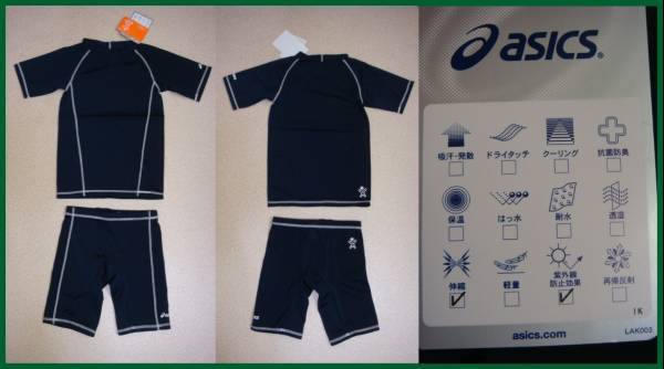 ●アシックス・スクスク/ネイビーラッシュガード上下セット120●