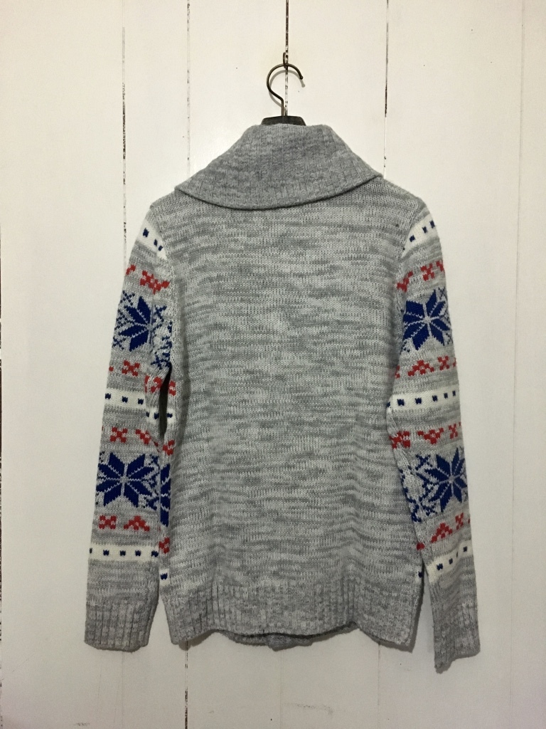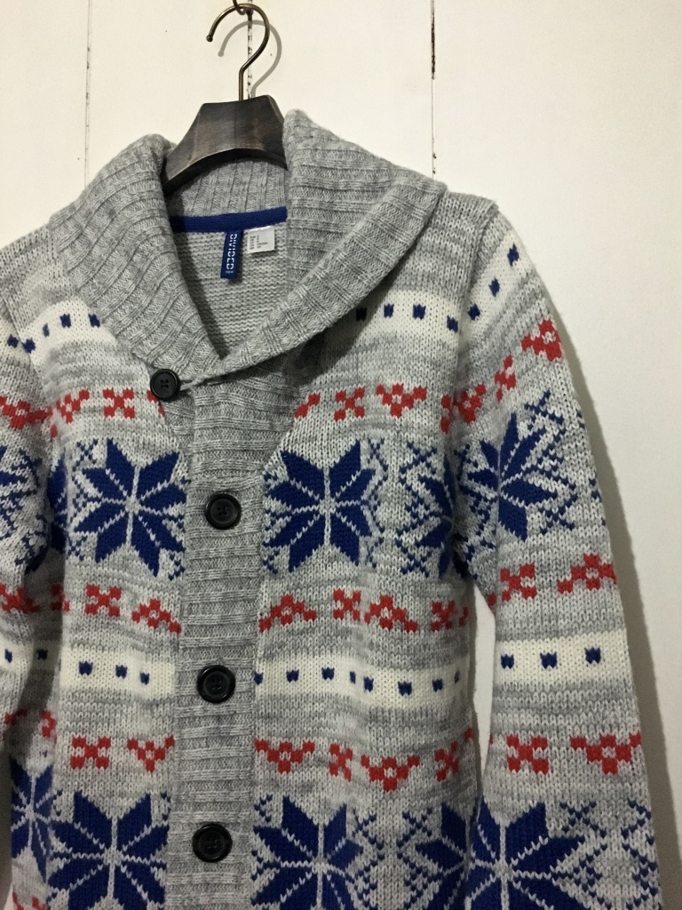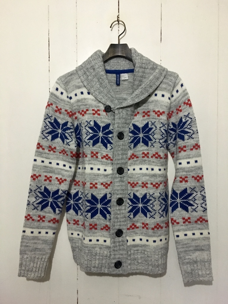 ☆H&M エイチアンドエム 雪柄 ショールカラー カーディガン セーター USA S スノーパターン 総柄