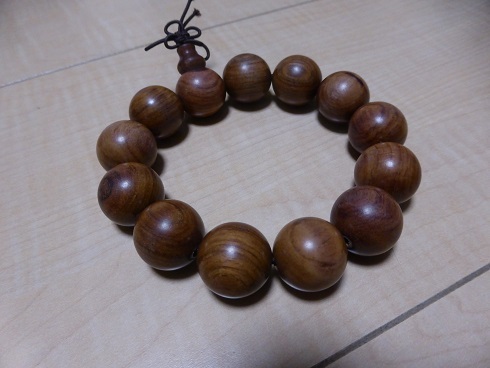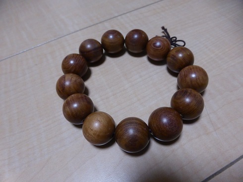 黄花梨?ブレスレット 直径約17mmの大珠13個を連ねて、重さ45g