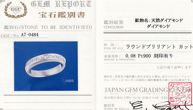 ★付属品 | 鑑別書(ジャパン・ジェム・グレーディング・センター発行)・ケース(タサキ製のケースのご用意はございません。一般の無地のケースをお付けしております。) | |