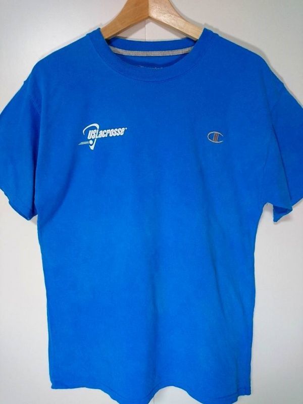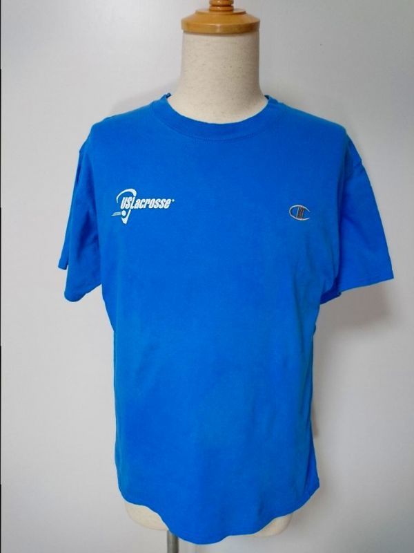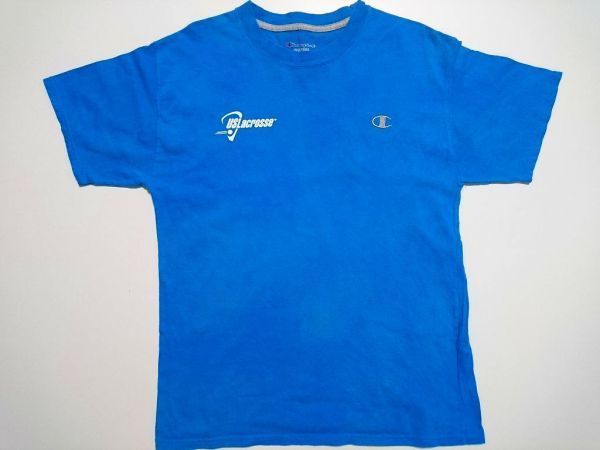 US USED チャンピオン ラクロス スポーツ Tシャツ ロゴ刺繍 プリント US【M】水色