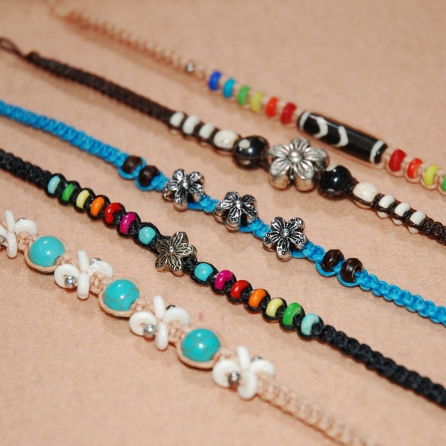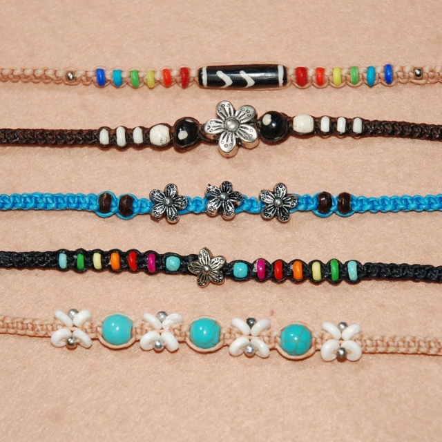 ビーズをワックスコードで編み込んだ、ミサンガ5本セットです☆