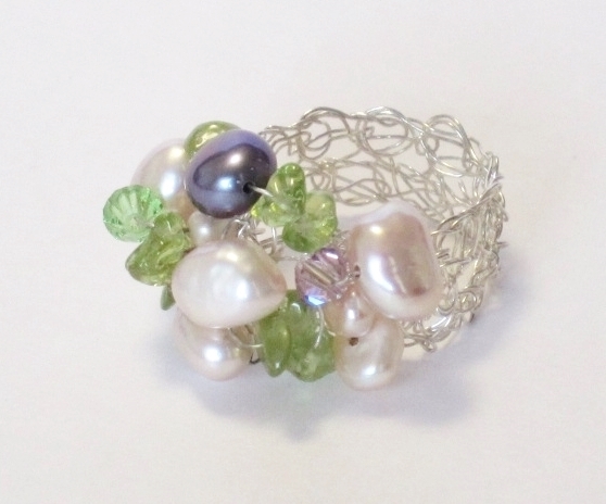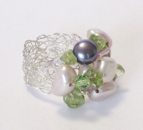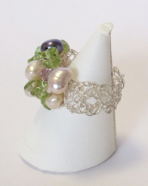 ハンドメイドの1点物です。 純銀の極細ワイヤーにピンク淡水パールやペリドットをていねいに編み込んだシルバーリング。 天然石の間にはピンクやライトグリーンのスワロフスキーがきらきらと輝いていて、とても素敵で可愛いです。 身につけていることを忘れる位ソフトで軽くつけ心地抜群。 日常カジュアルにお使いになっても素適です。 極細ワイヤーはとてもソフトなので、指でネックレスの形を簡単に整えることができます。 問屋を通さず、メーカー直結ならではのプライスでご提供いたします。 絶好のチャンスをお見逃しなく! 是非おすすめします。 ★シルバーが黒ずむのが気なる方へ いつまでも美しい輝きを保つ純銀アクセサリーのお手入れ法を同封しますのでご心配なく。 素 材:ワイヤー部分・超ソフトタイプの純銀(純度99.9%) 淡水パール(ピンク、グレー)、ペリドット、スワロフスキー(ピンク、ライトグリーン) サイズ:10.5 高さ・8~10mm NO.ri-149 | |||