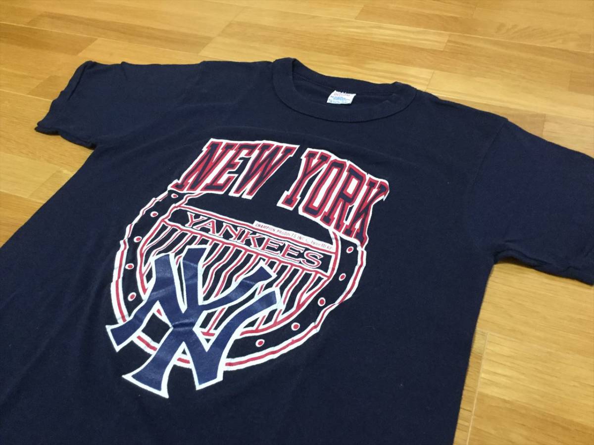 OLD CHAMPION トリコタグ NY YANKEES Tシャツ 紺 (M) ビンテージ チャンピオン ネイビー VINTAGE 送料込み!! MADE IN USA