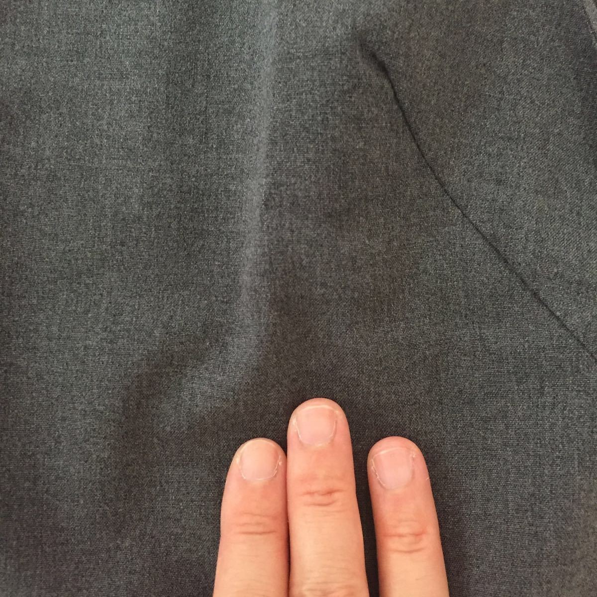 表地、ポリエステル65%、レーヨン30%、ポリウレタン5%裏地、ポリエステル100%