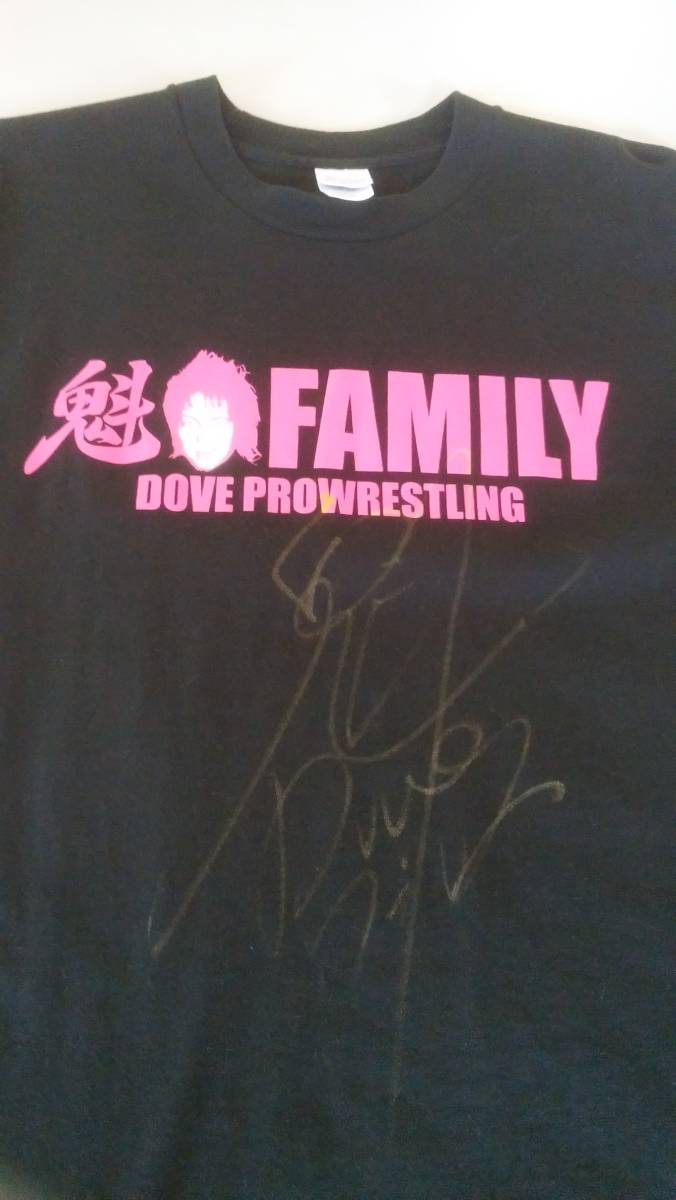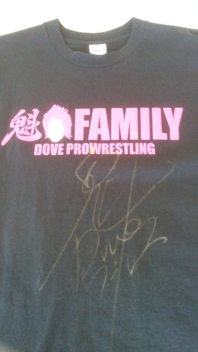 胸には『魁 FAMILY DOVE PROWRESTING』  と 魁さんの直筆サイン(多少かすれて薄くなっています)