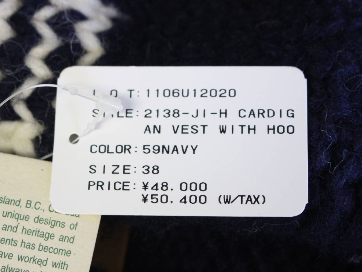 新品◆カナディアンセーター◆雪柄カウチンセーター フード付き ジップ ニットベスト(38)定価48,000円【183-131】