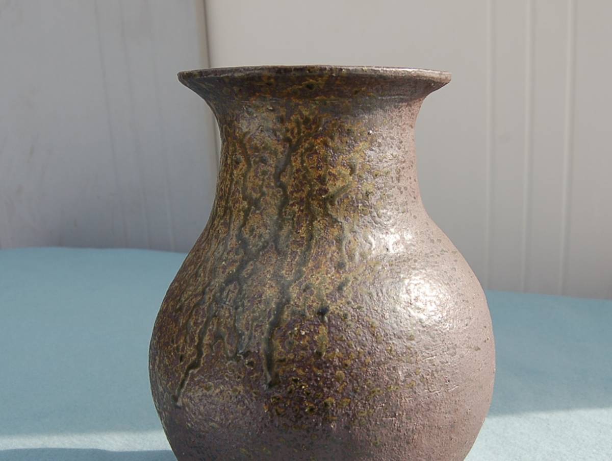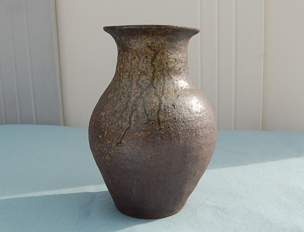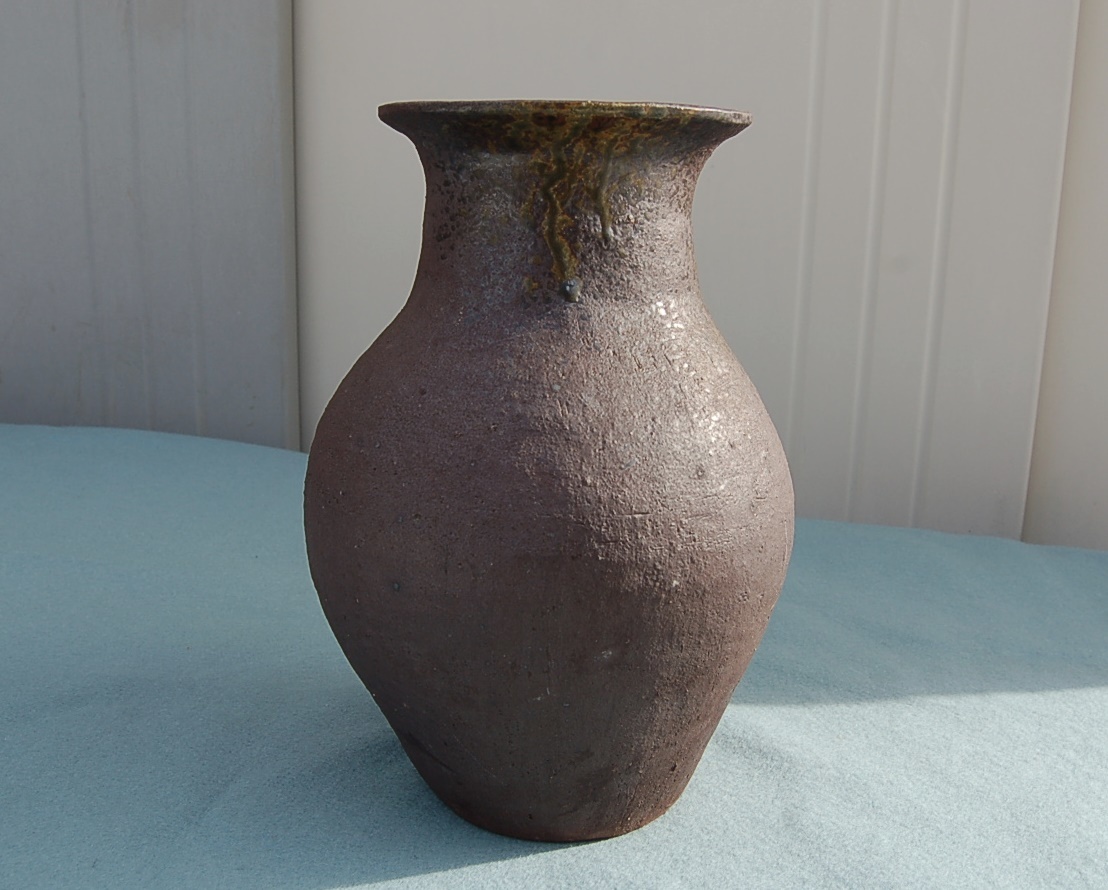 越前焼 花瓶 緑・垂釉 古風・素朴感