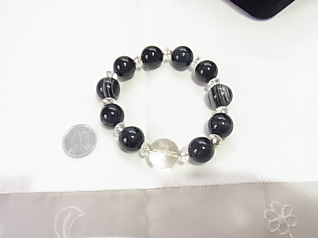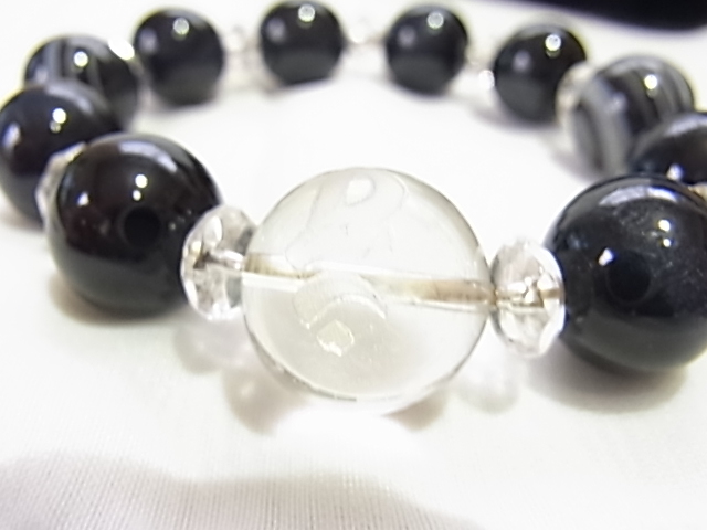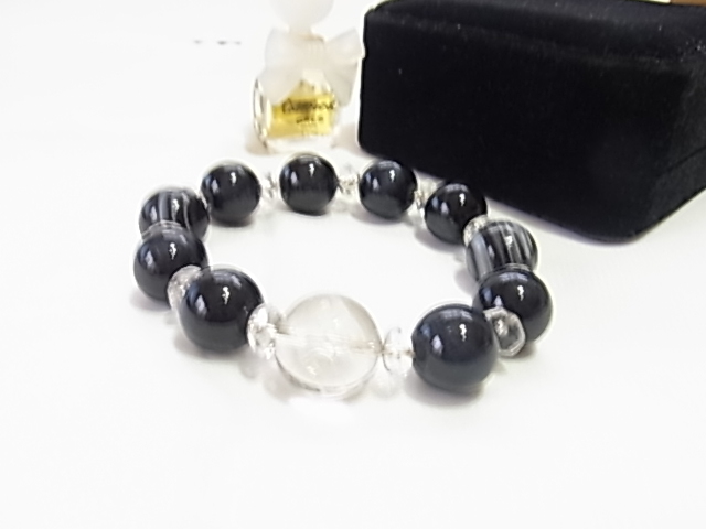 パワーストーン 大粒のオニキスに水晶 ユニセックスデザイン 伸縮性ブレスレット▼