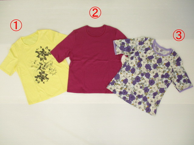 【美品!】★レディースTシャツ3点セット★①fiore KOBE/黄 ②fiore KOBE/紫 ③Clear Stream/花柄 M~Lサイズ