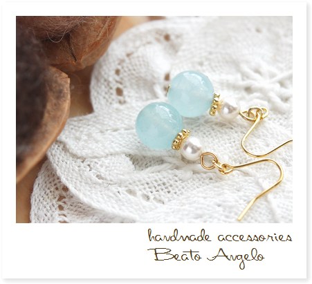 ◆◆+angelo+天然石カルセドニーとスワロフスキー パールのピアス(p-002)シーブルー G 香水瓶 シンプル 夏