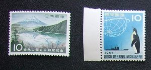 「未使用」昔の切手【自然公園の日・地球観測年】2枚組 1957,9
