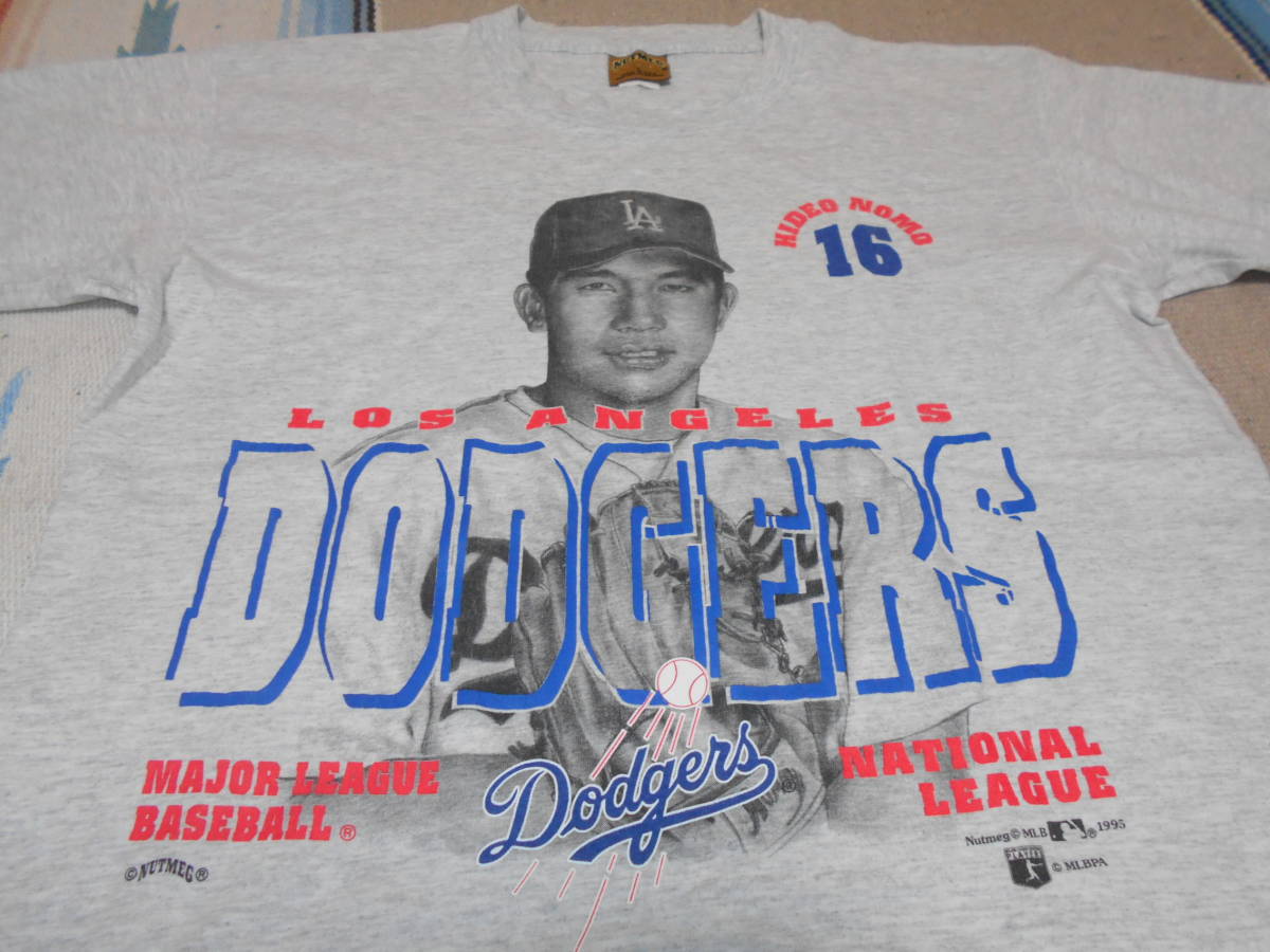1995年 25年前 MLB アメリカメジャーリーグ オフィシャル 「NUTMEG」製 LosAngeles DOGERS HIDEO NOMO #16 ビンテージ オリジナル Tシャツ MADE IN USA